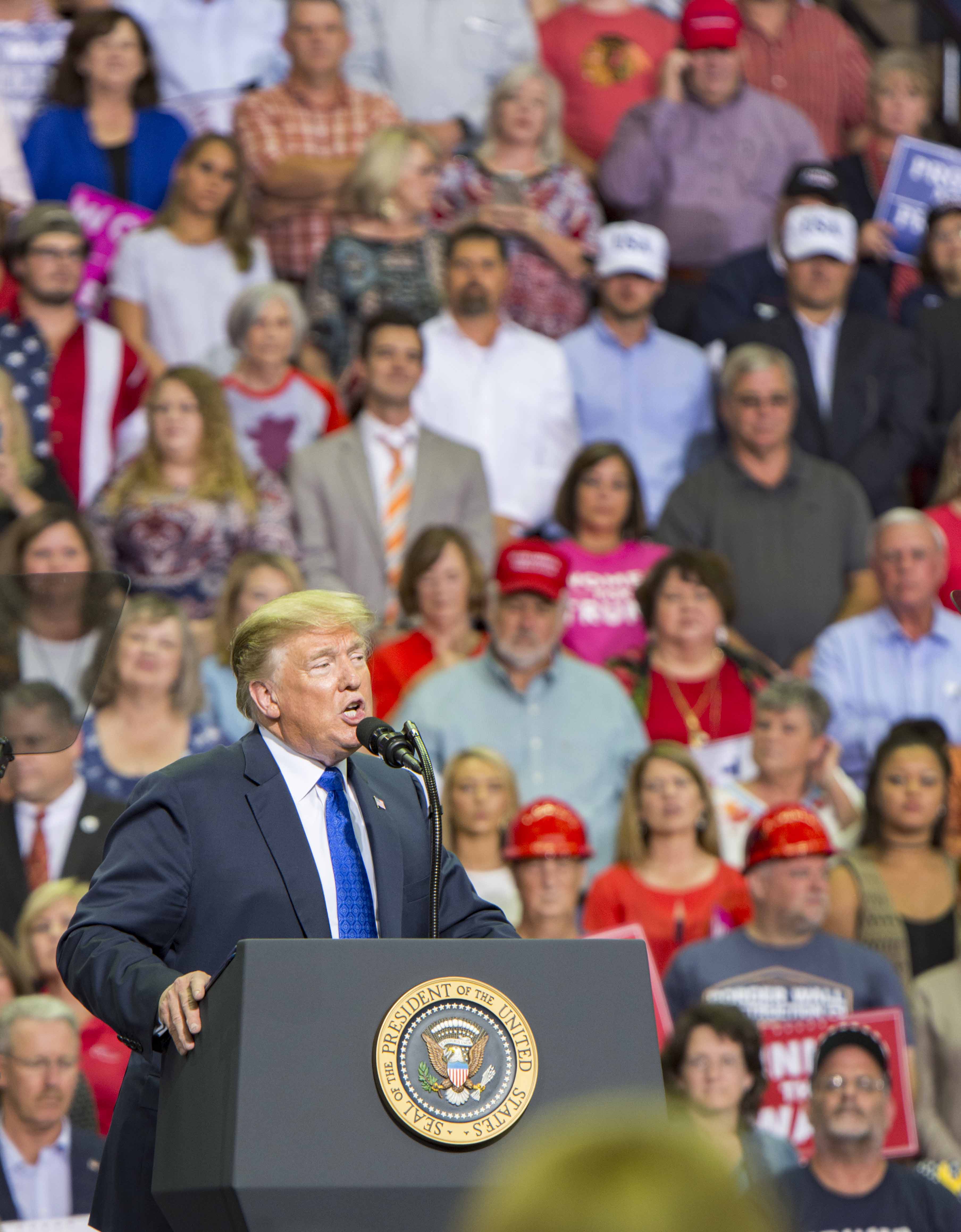 SOUTHAVEN — U.S. President Donald Trump addressed the controversy surrounding Judge Brett Kavanaugh’s Senate confirmation hearing, endorsed incumbent U.S. Sen. Cindy Hyde-Smith’s candidacy and touted his successes at a “Make America Great Again” rally in Southaven on Tuesday evening.