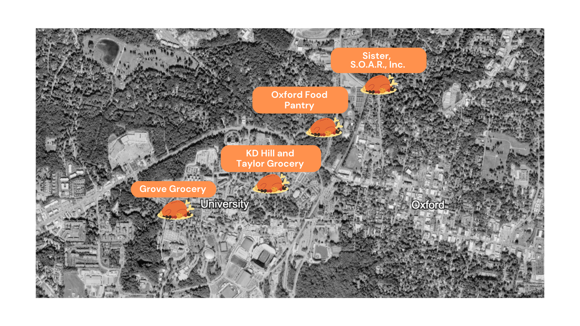 In addition to campus resources, there are several organizations in the Oxford-Lafayette community offering Thanksgiving meals.