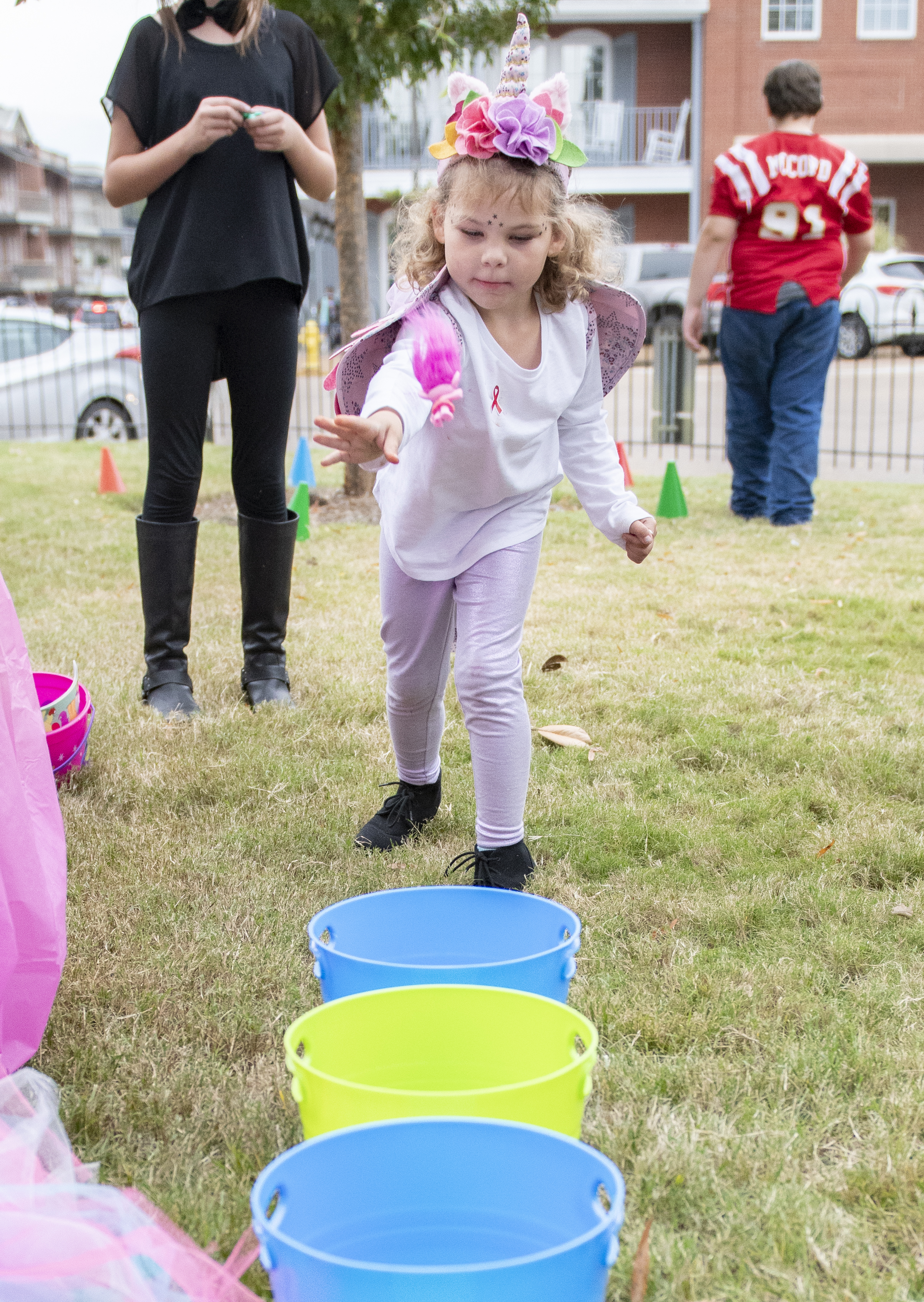 One mother, Megan McDonald, attended with her two daughters dressed as Rapunzel and a dalmation, the younger of which was trick-or-treating for the first time.