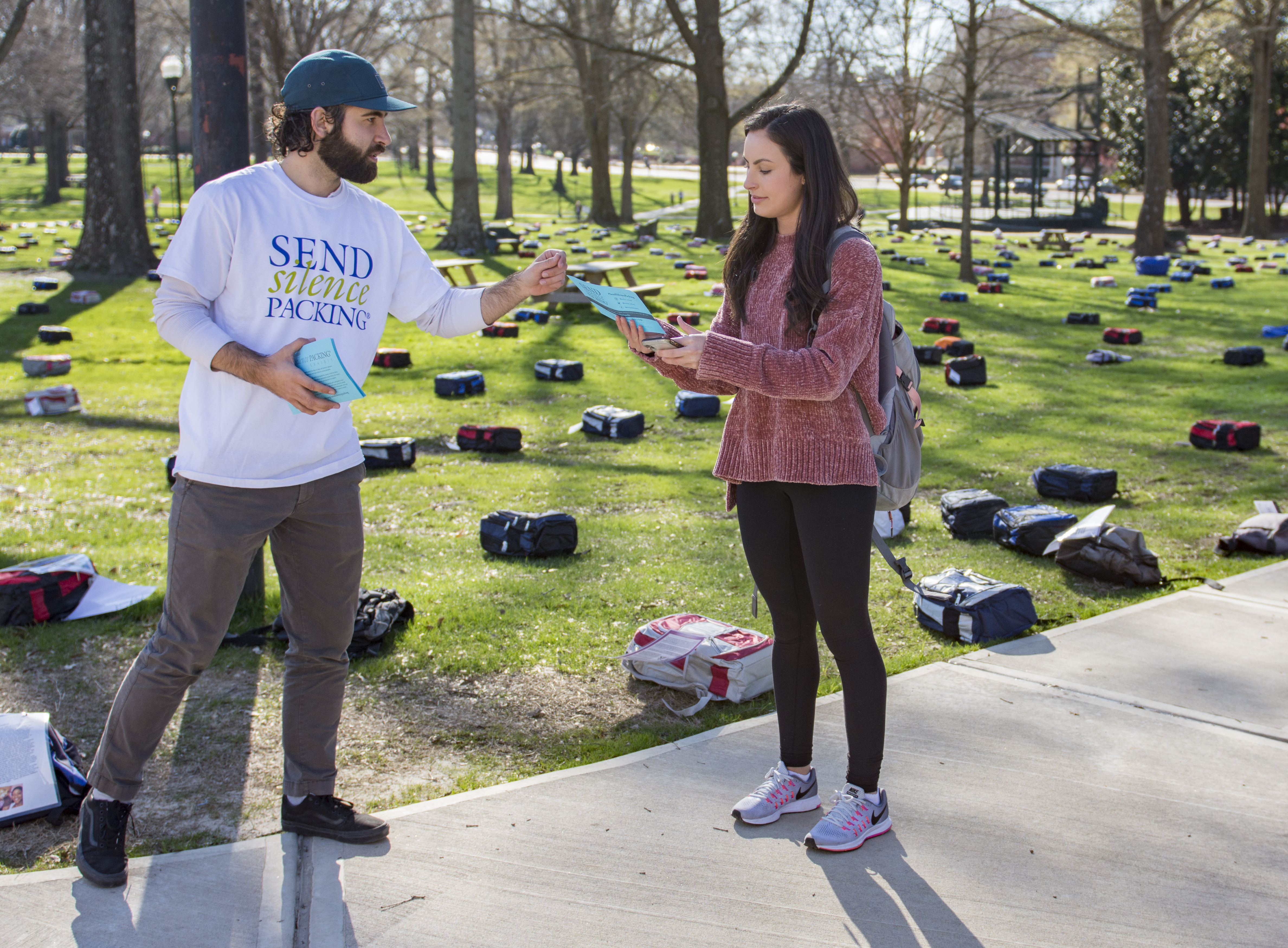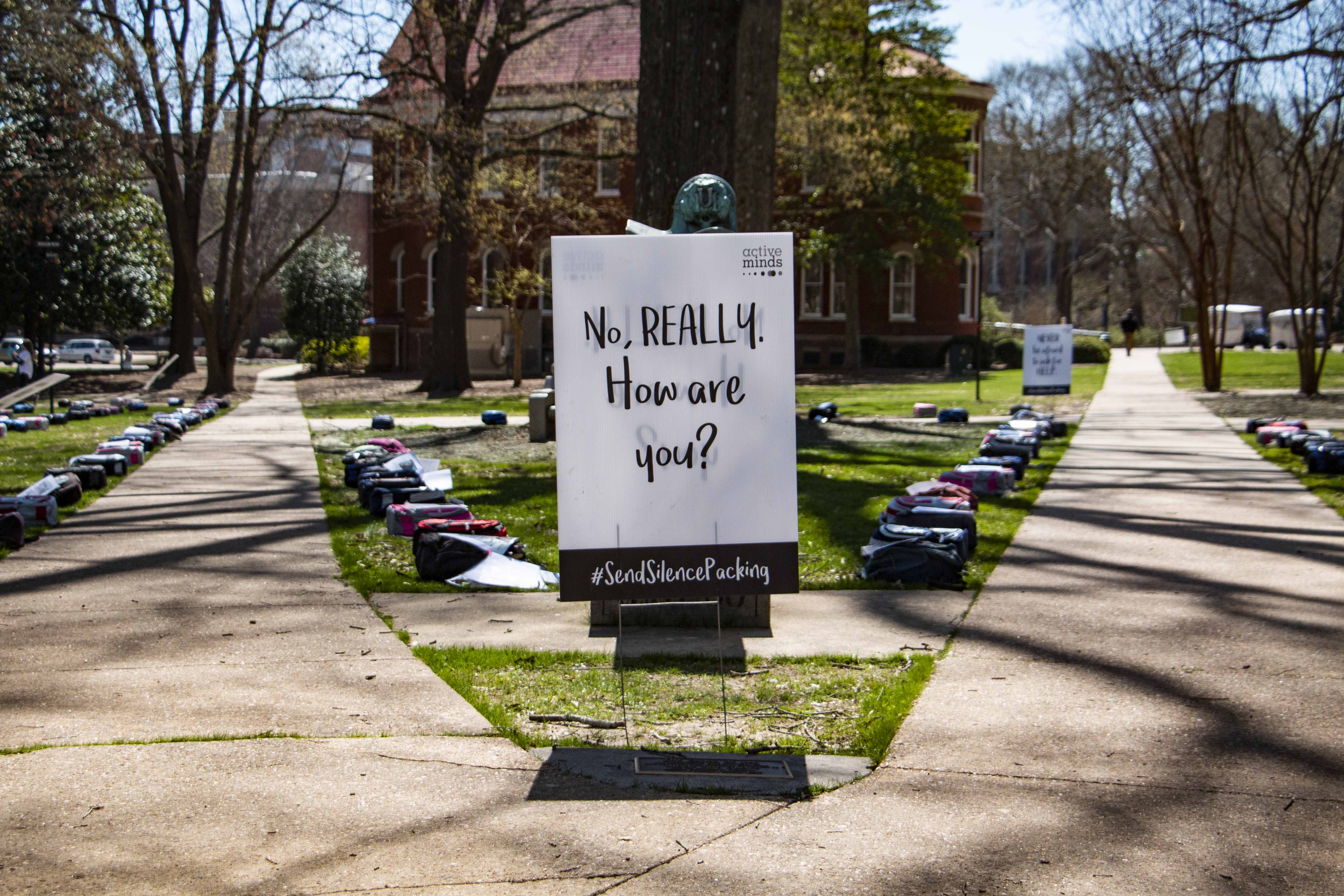 The University of Mississippi chapter of Active Minds, a non-profit organization that raises awareness about mental health, teamed up with the National Active Minds Organization based in Washington, D.C. to create the visual display. The display, which aimed to raise awareness about mental health and suicide on college campuses, includes backpacks and tables lined with pamphlets.