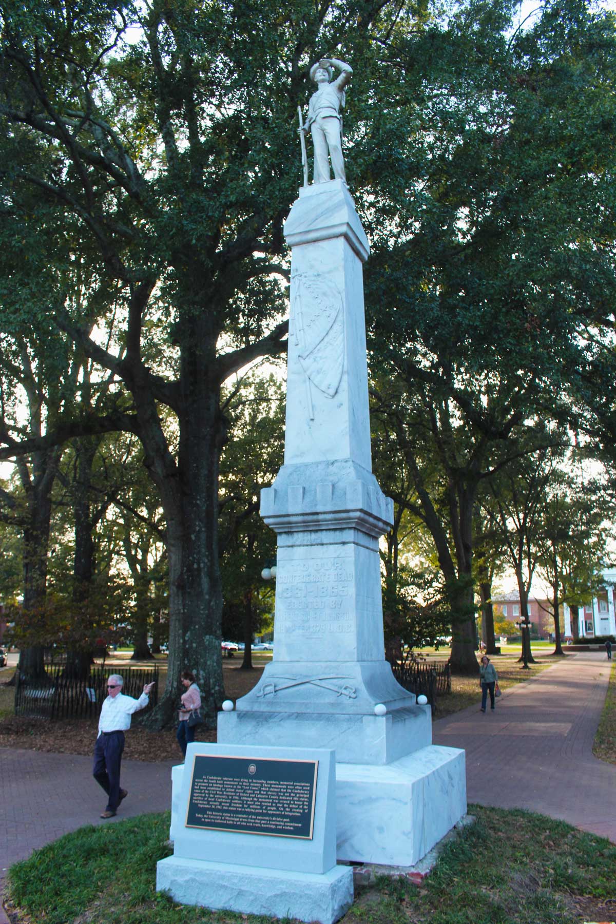 The statue, erected in the Circle 1906 and paid for by residents of Lafayette County, served as a rallying point for neo-Confederate protesters this past weekend. In 1962, students rioting against James Meredith’s integration of the university gathered at the base of the statue.