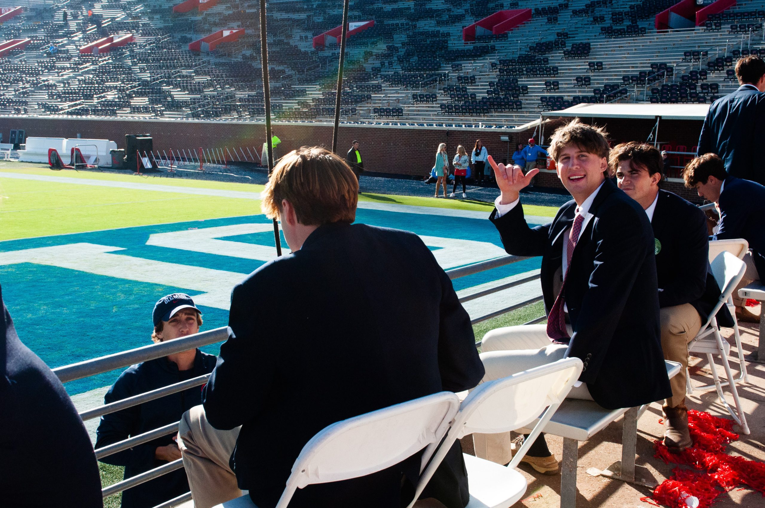Pledges reserve seats in Vaught-Hemingway Stadium for their fraternity members at Ole MIss-Arkansas game on Oct 7, 2023. Photo by Antonella Rescigno