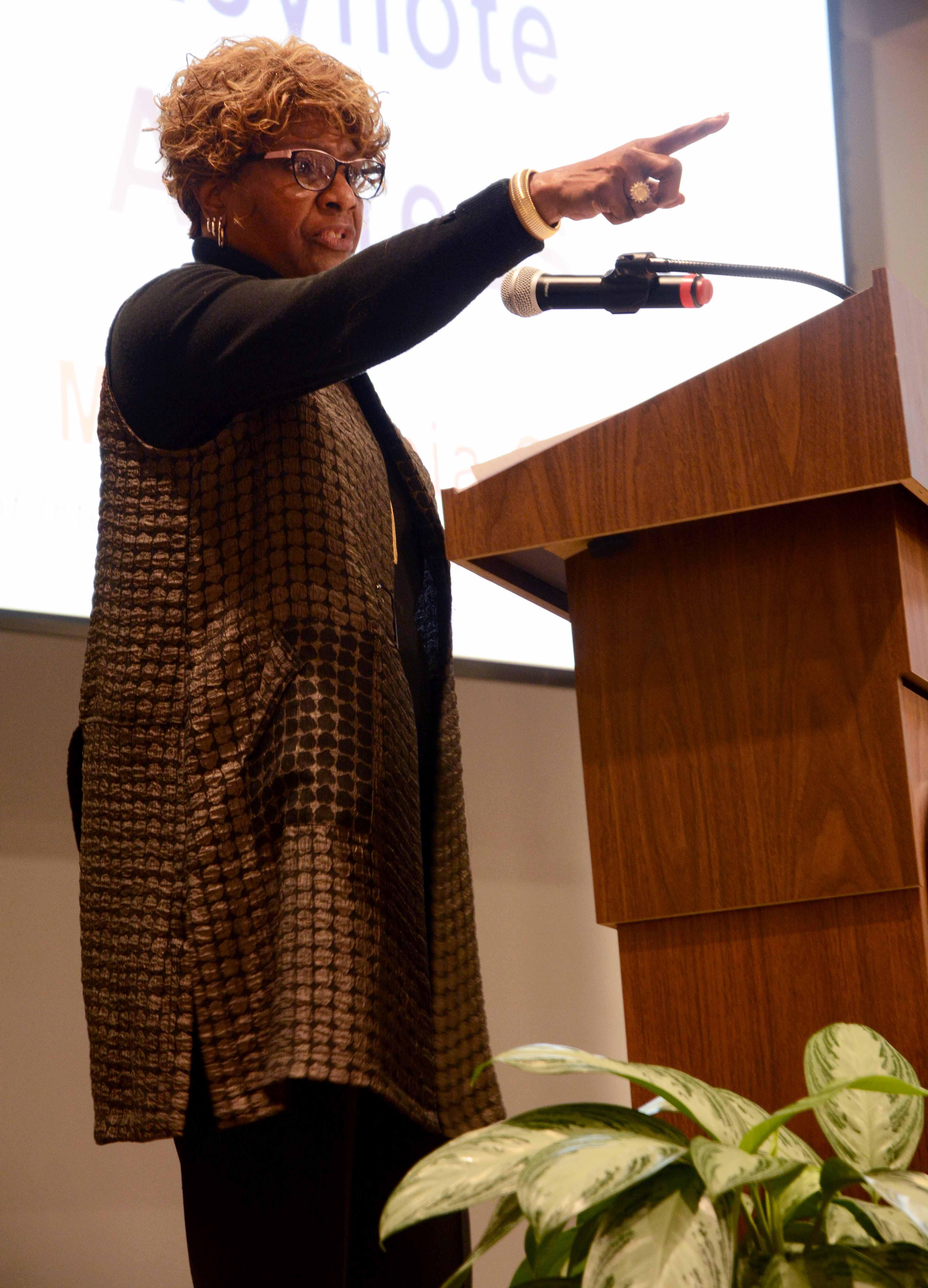 Marcia Cole addressed a crowded audience on Thursday night during the university’s opening ceremony for Black History Month, and stressed the continued importance of demanding justice and condemning discrimination in order to end modern racism. Photo by Reed Jones “A...
