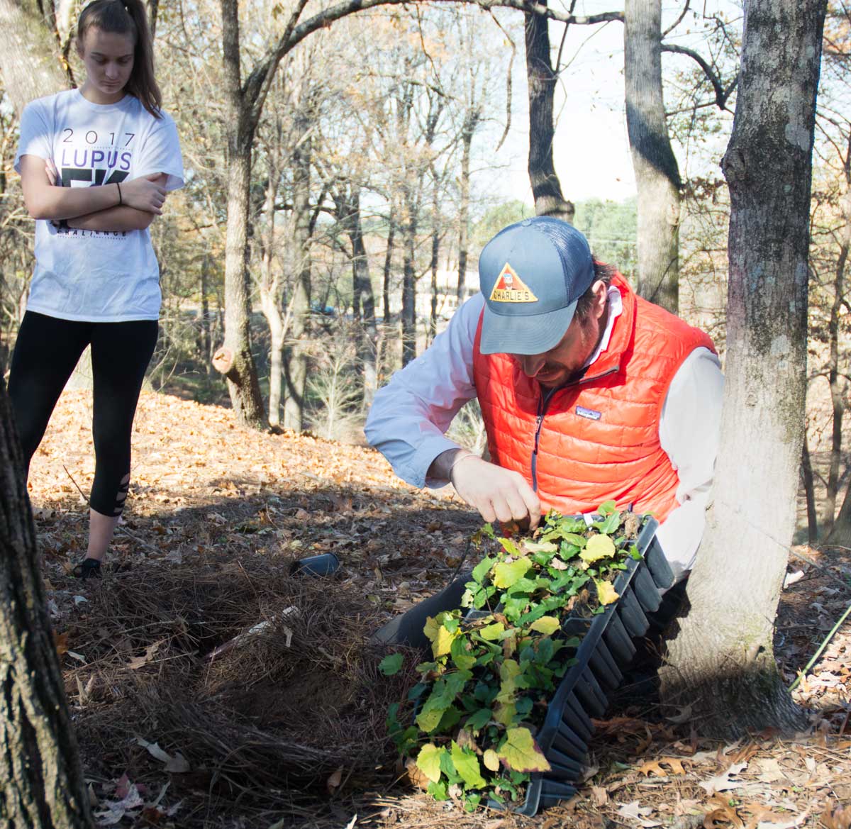 Strawberry Plains Audubon worker Mitch Robinson (right) instructs volunteers on how to plant Christmas ferns and white wood asters at the corner of Fraternity Row and Vaught Drive on Wednesday. 2500 plugs were planted. Photo by Marlee Crawford The Office...
