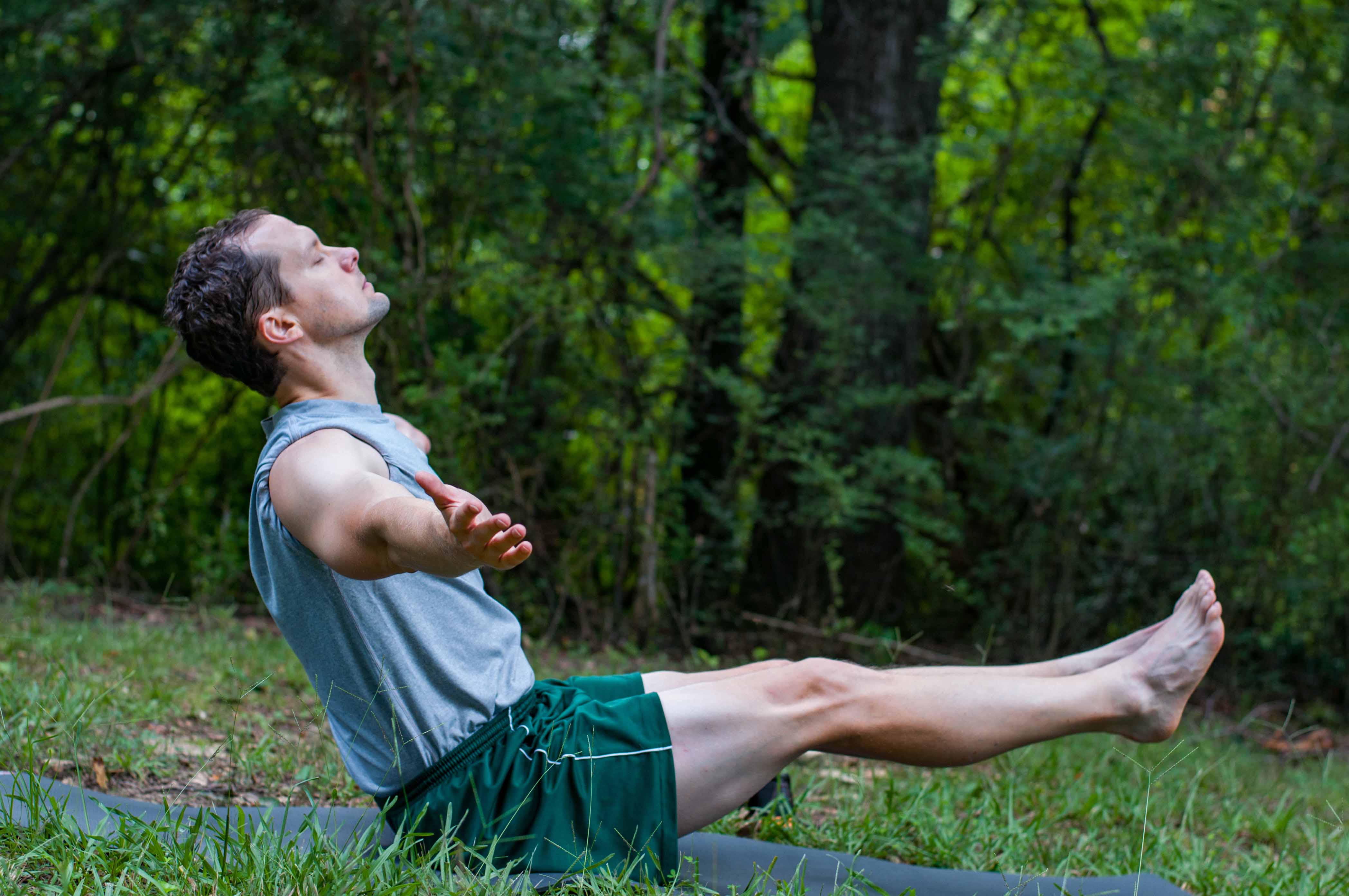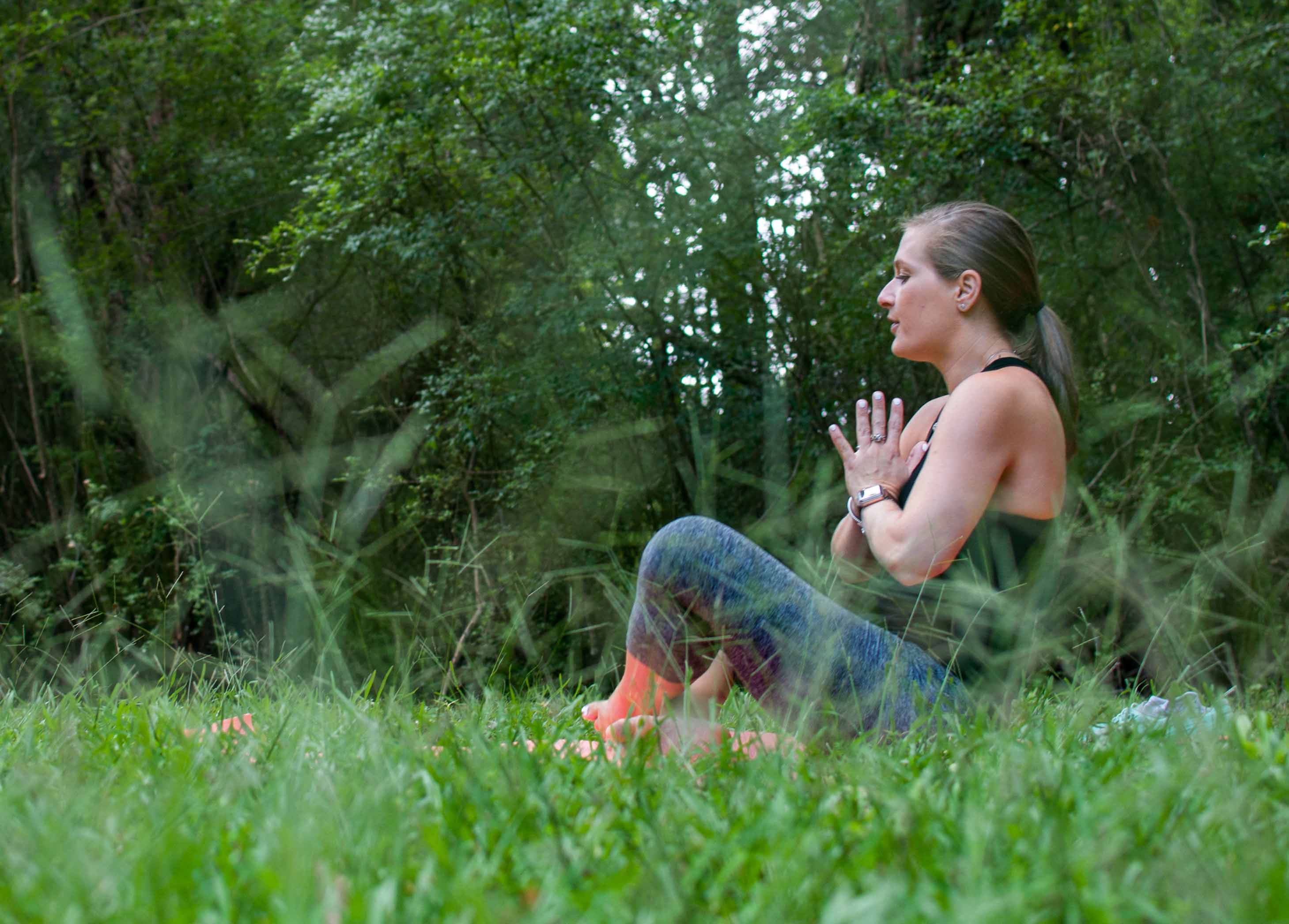 As I opened my eyes, I noticed a change. The clouds had moved, and the sun was bursting through the trees, casting a golden light on the mats as they raised their arms towards the canopy of the trees, stretching their bodies upwards. I brought my camera up to my eye and took photos with a renewed focus.