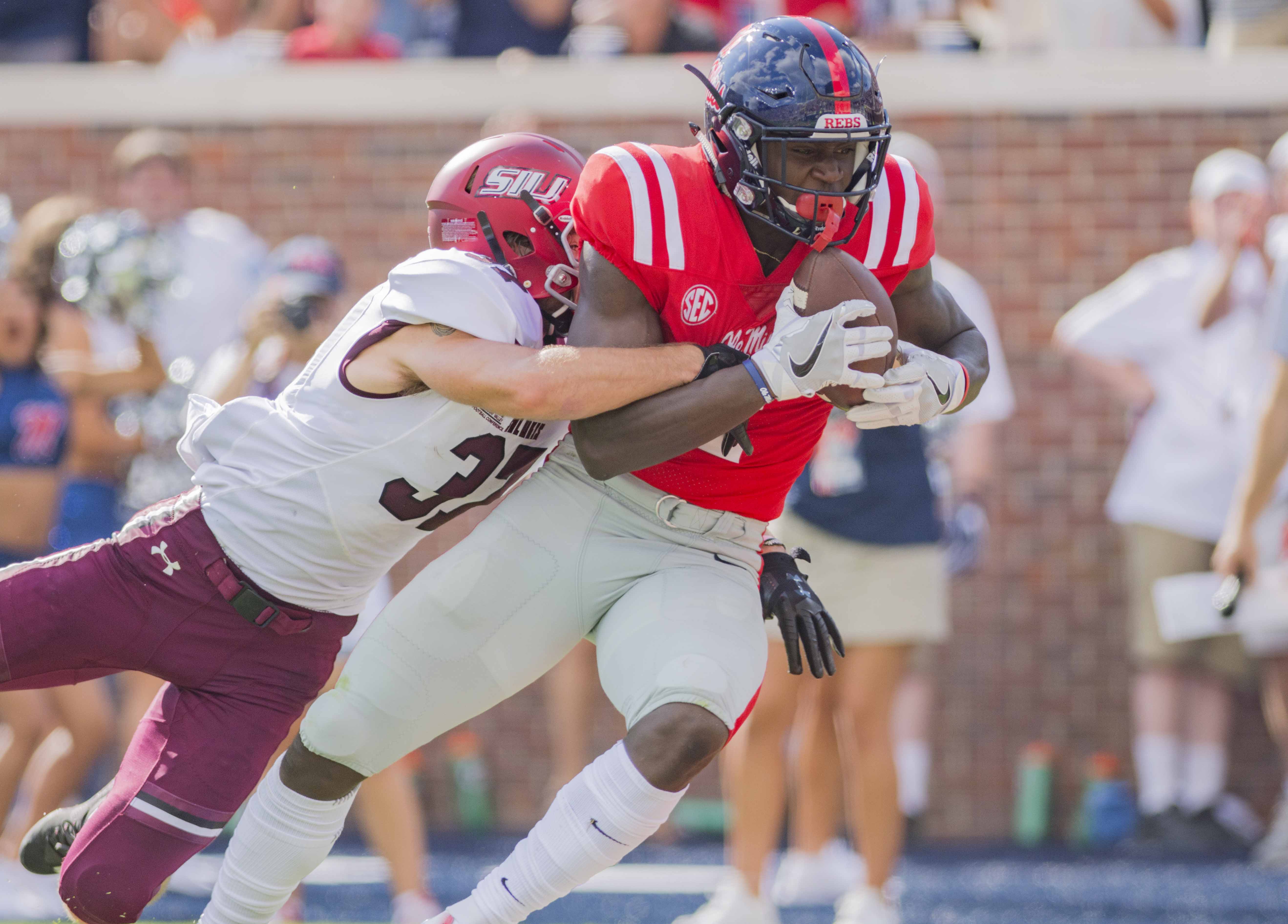The Rebels have worn powder blue helmets in the last two seasons versus LSU (although last season’s lids were throwbacks with numbers on the sides). LSU wears white jerseys at home and on the road, and the Rebels usually wear red against the Bayou Bengals. If Ole Miss is going to break out the powder blue lids this season, doing so for this game makes the most sense.
