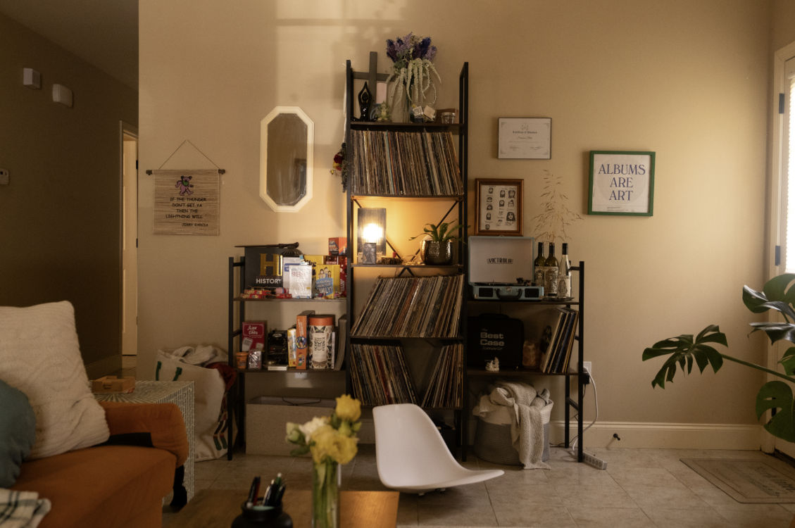 Decked out in couches, lamp-lighting and vinyl records, Crass’s space offers a hangout spot that his friends often visit.