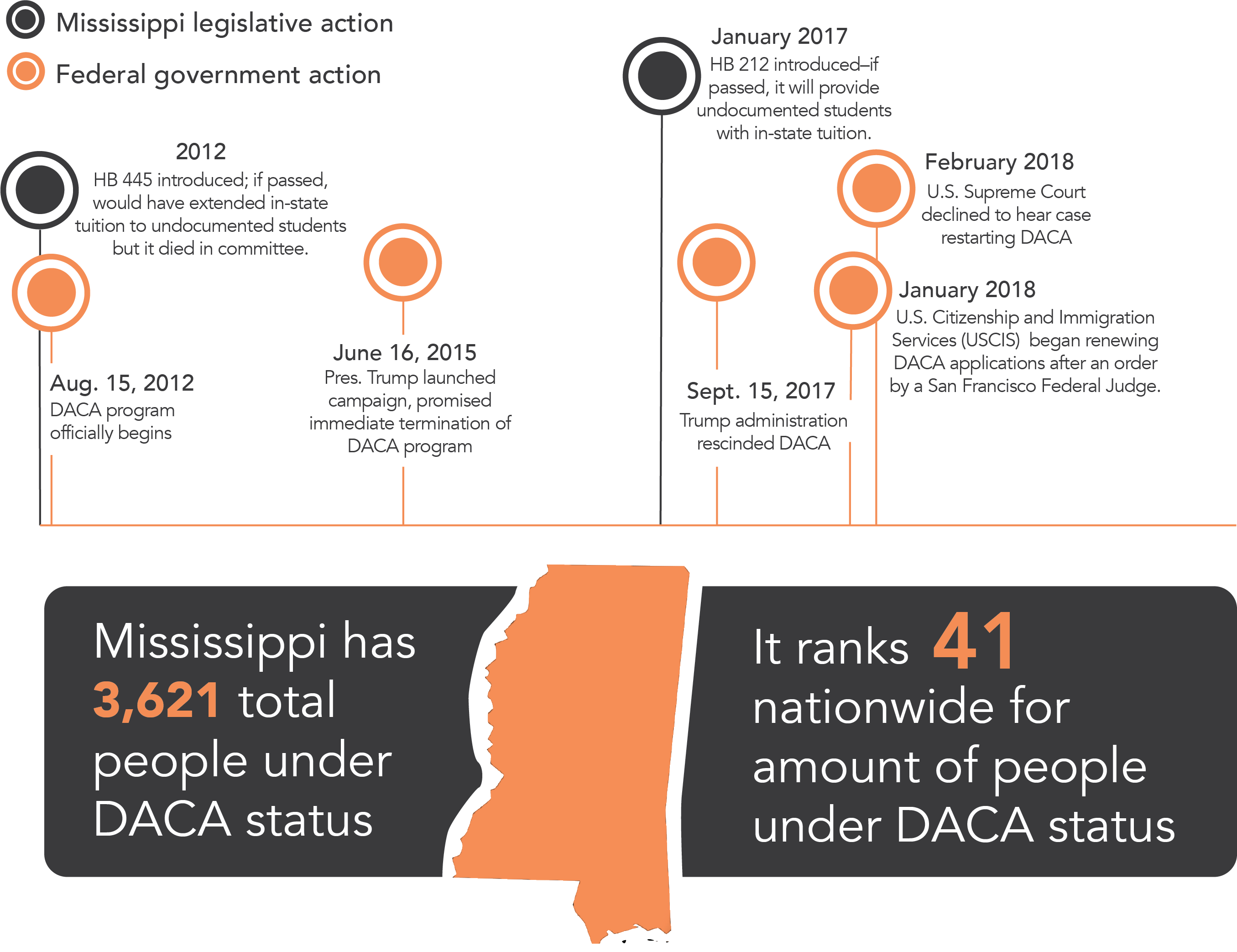 In Mississippi, to be able to attend an institution of higher education as a “Dreamer,” college administrations have to accept documentation, which is usually an employment authorization form.