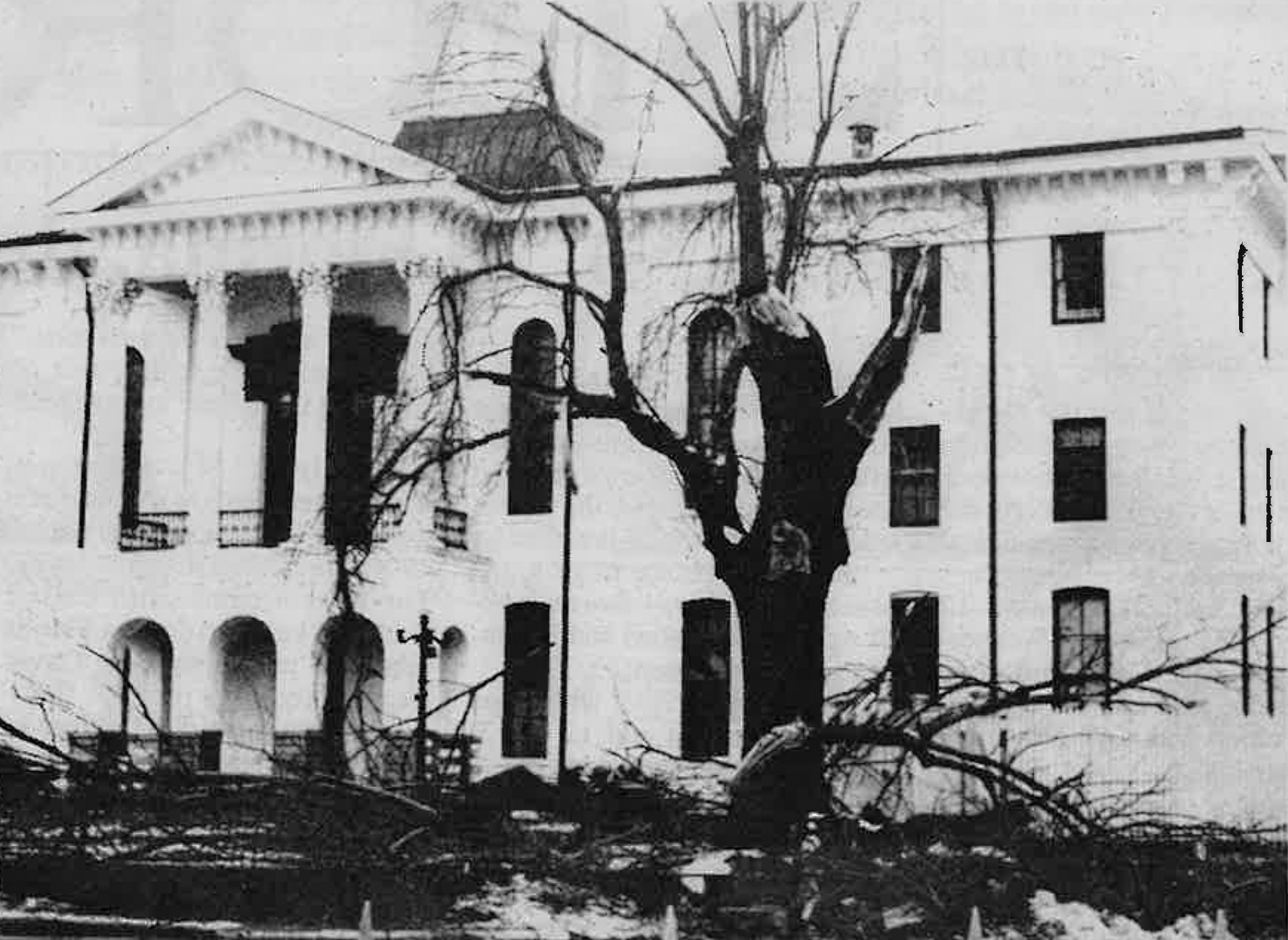 “That night it sounded like somebody was out in the yard shooting shotgun shells. You’d hear a crack, then a boom, and then (the limb or the tree) would hit the ground,” Turner said. He and his family lived in Carrier House, the UM chancellor’s official residence.