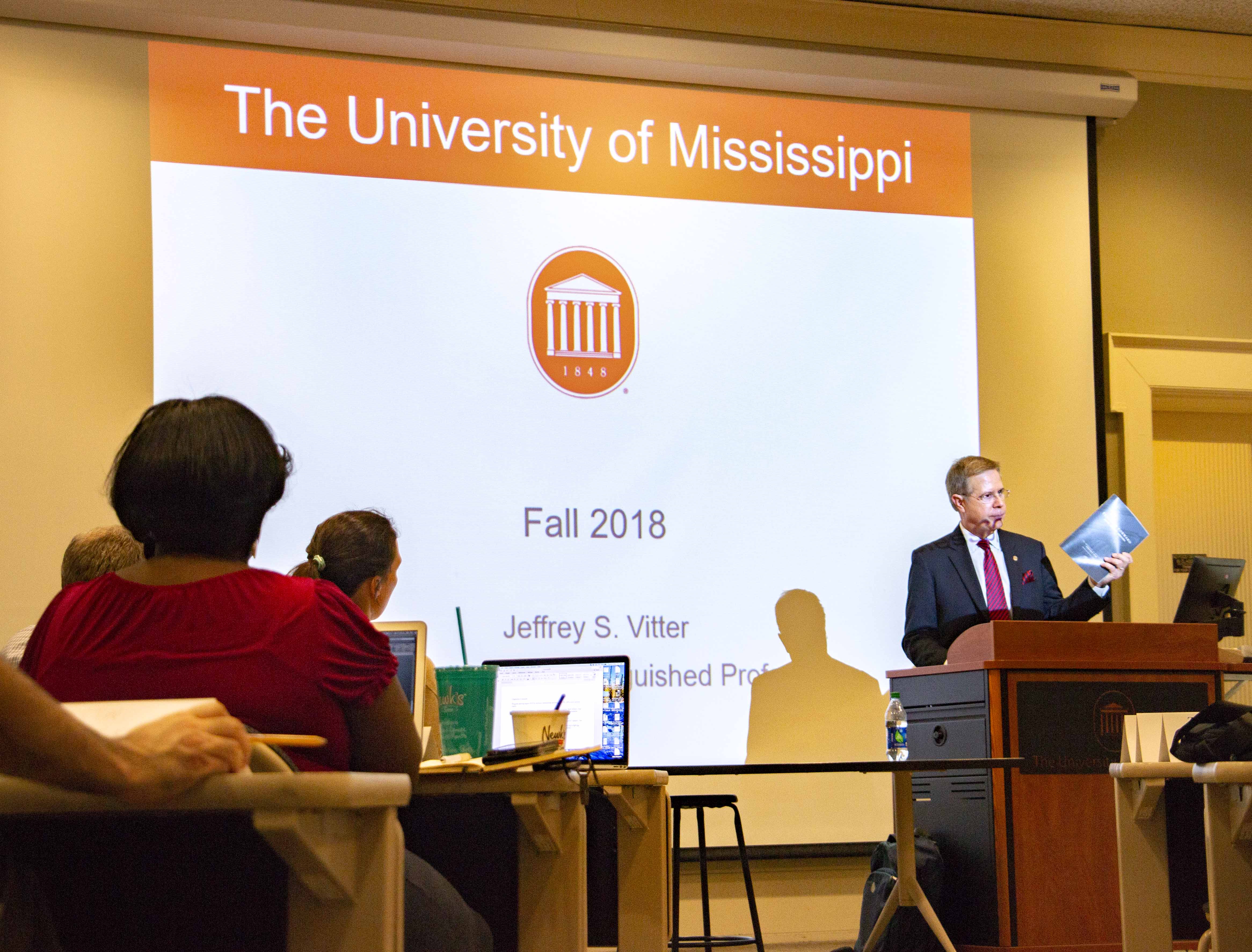 Vitter emphasized the achievements of the university over the past year. He announced that the Patterson School of Accountancy is one of the top ten in the nation, research funding on campus is up 21 percent and Ole Miss is the 12th fastest growing university in the nation, according to the Chronicle of Higher Education.