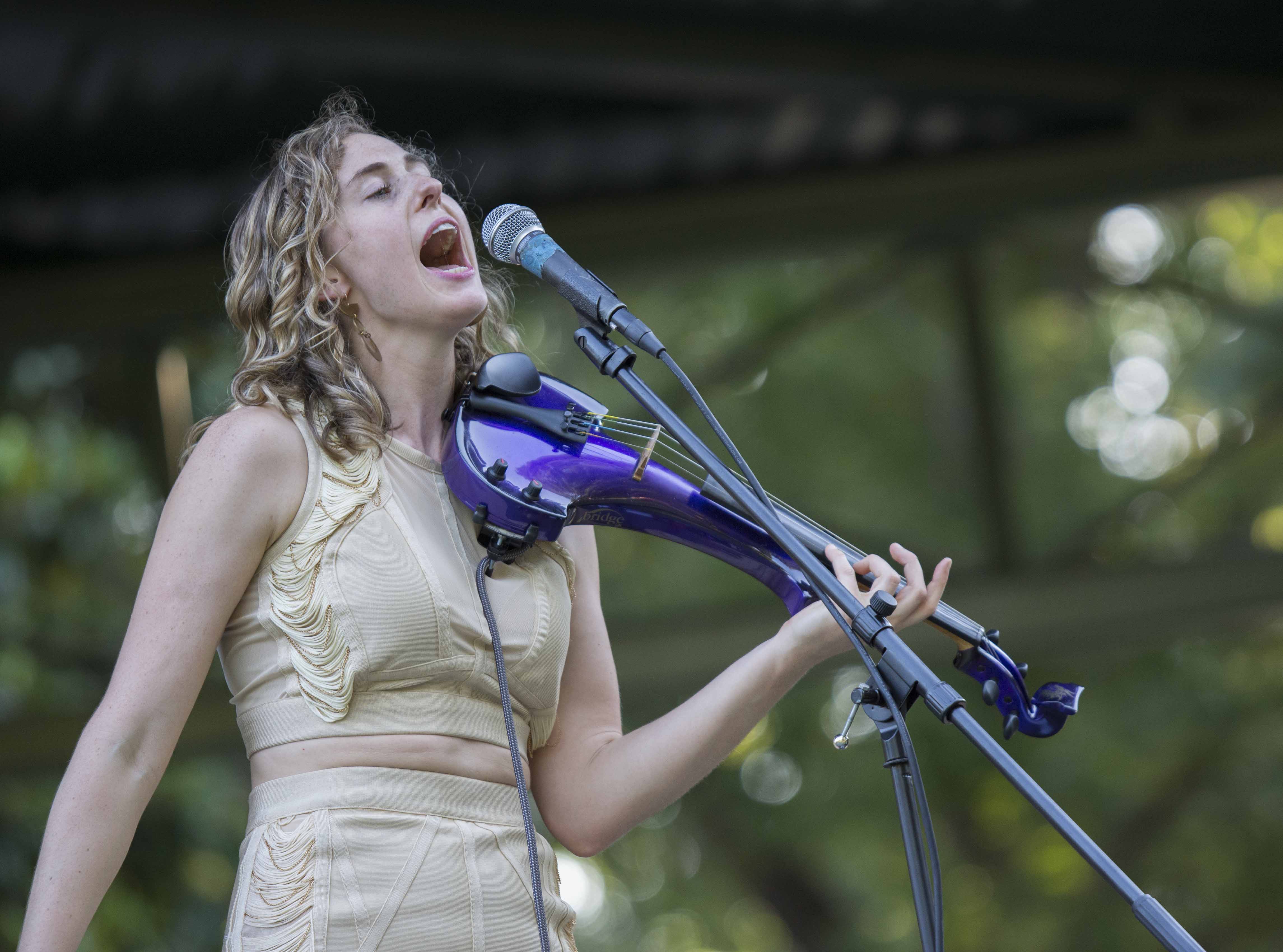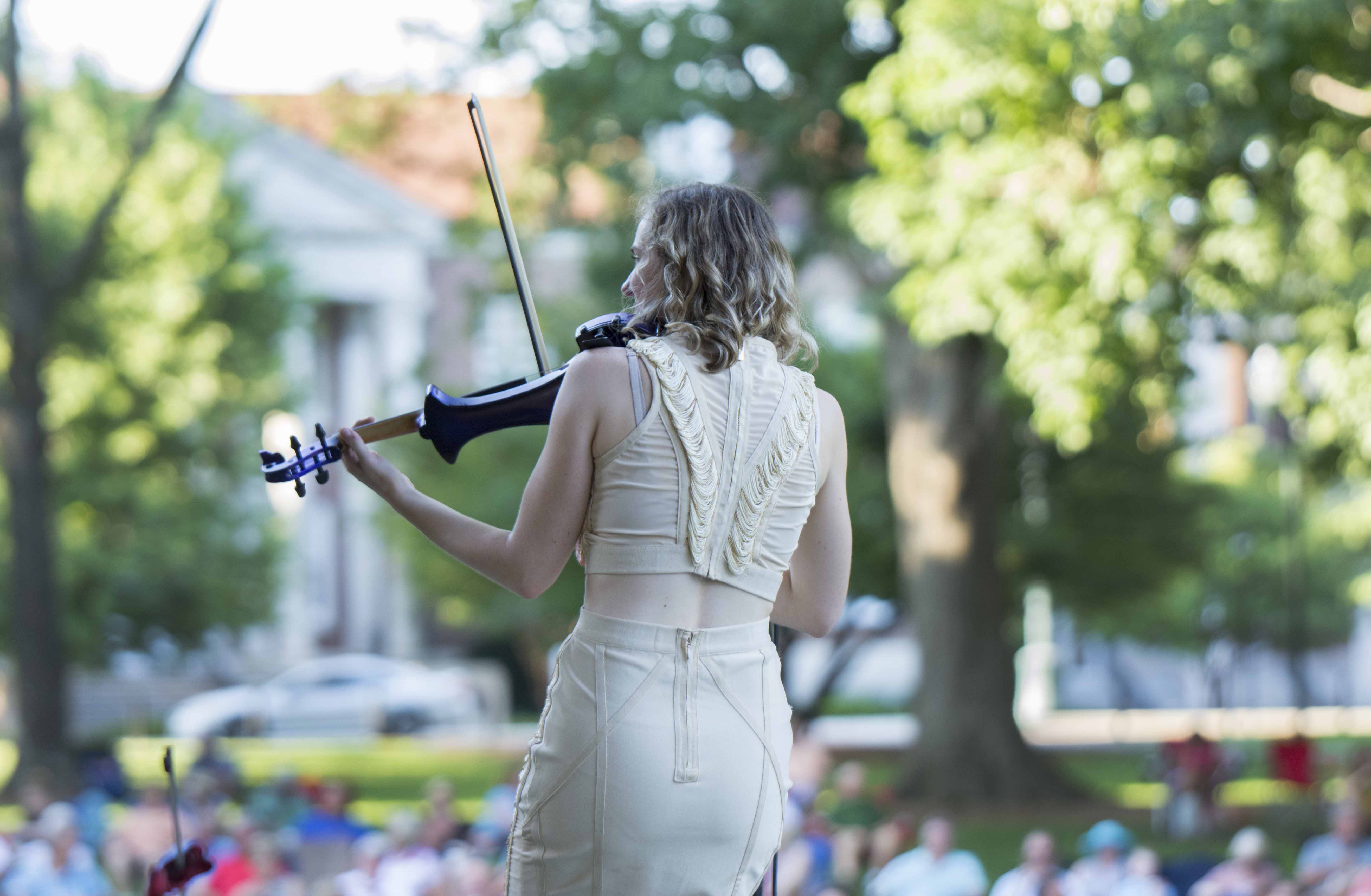 Alice Hasen of Blackwater Trio plays violin in The Grove during the second Summer Sunset Series concert this summer. Photo by Christian Johnson