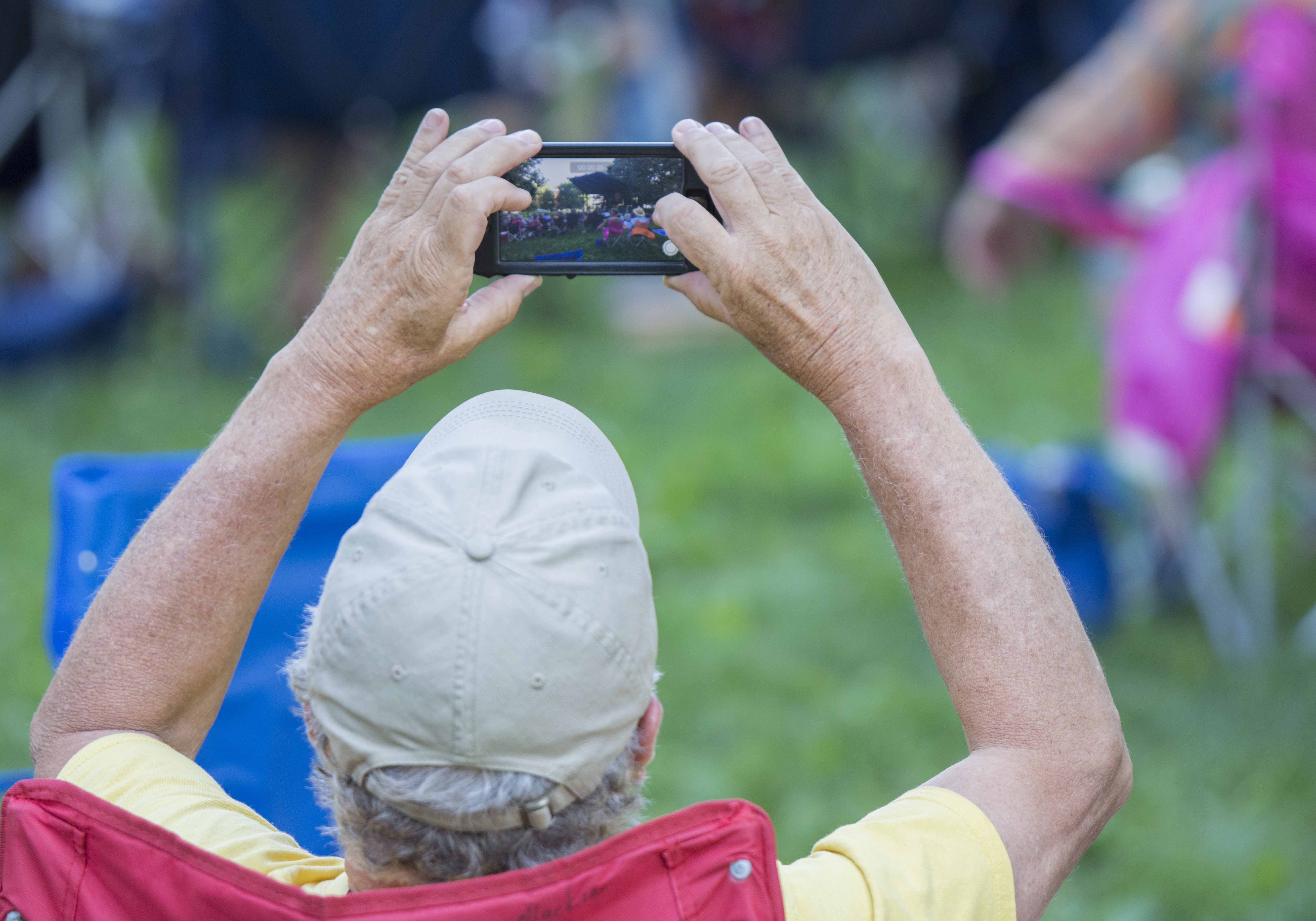 A fan uses his phone to record the Blackwater Trio concert on Sunday. Photo by Christian Johnson