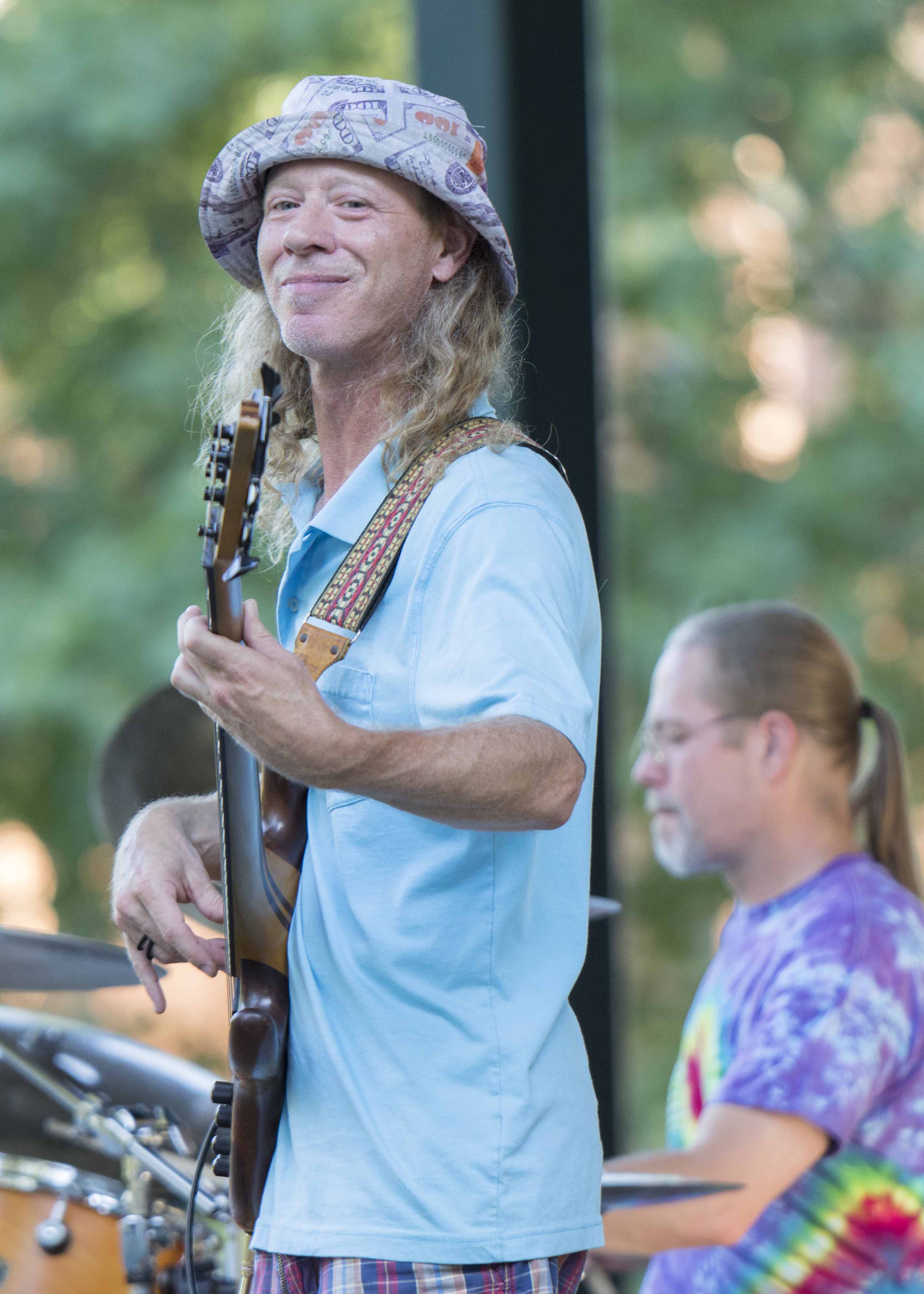 A guest member of Blackwater Trio plays guitar in The Grove on Sunday. Photo by Christian Johnson