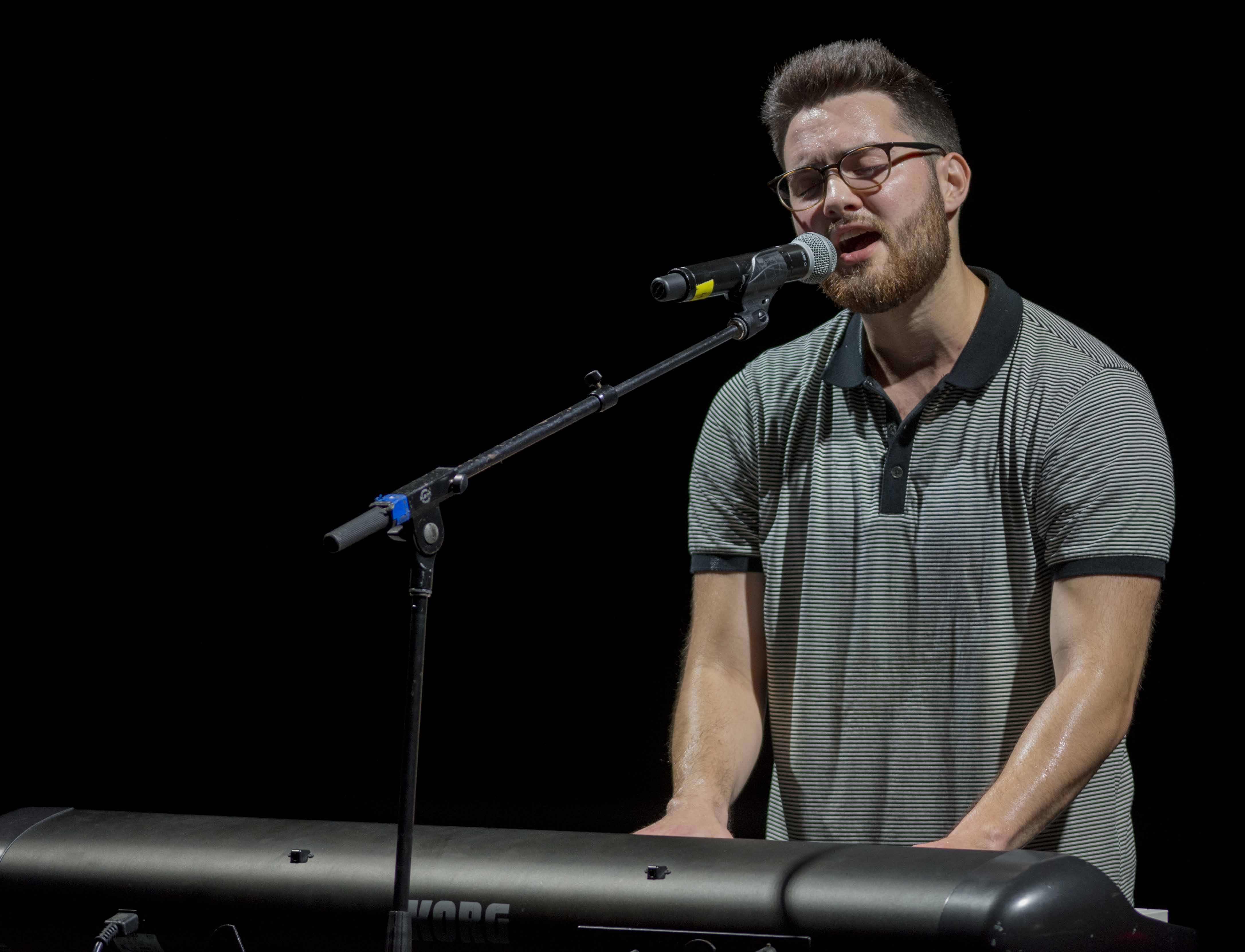 Sam Mooney performs in The Grove on Friday night during the annual Welcome Back Concert. He opened the concert for American Authors. Photo by Christian Johnson