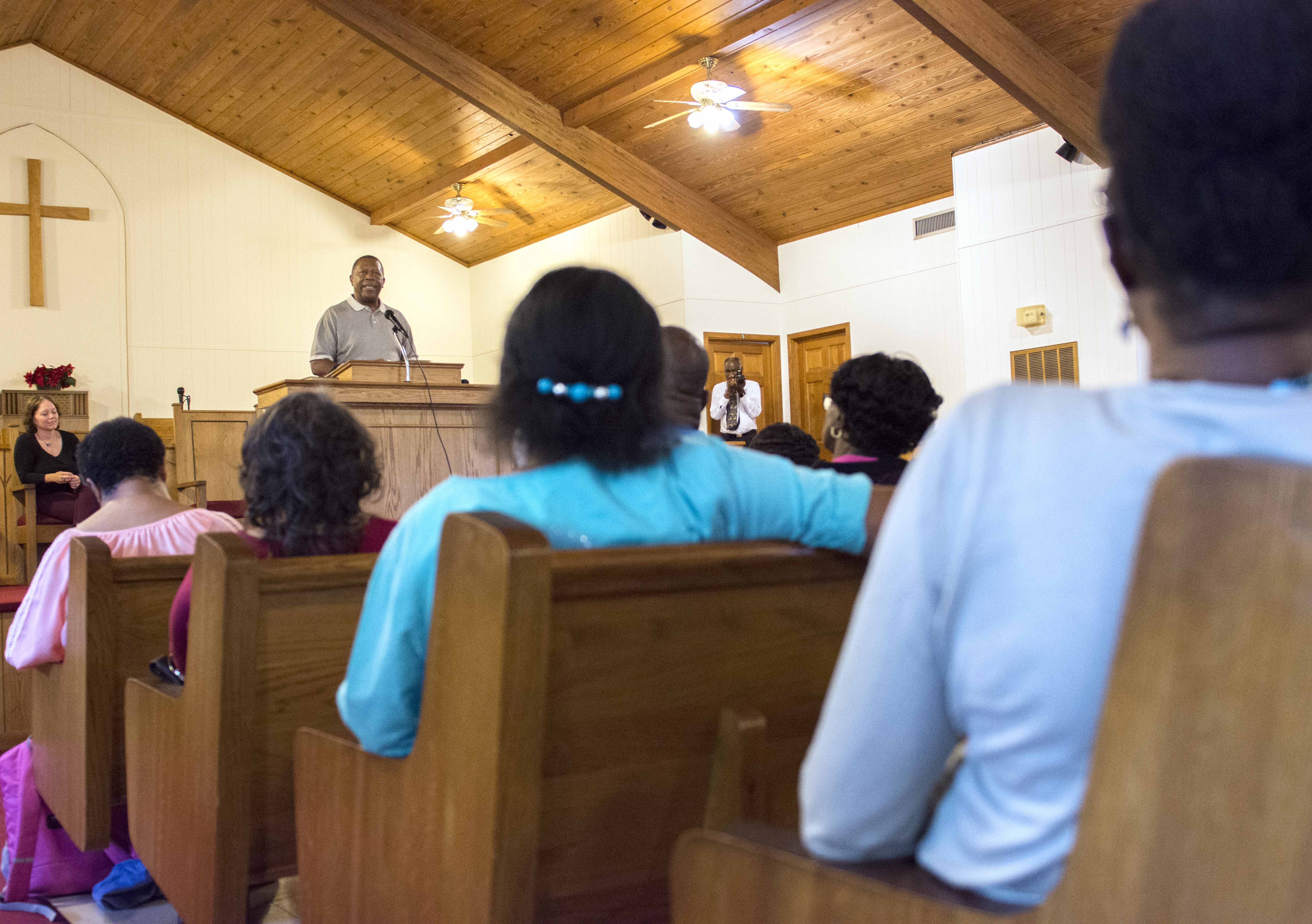 A few dozen people lined the pews in the Tallahatchie Oxford Missionary Baptist Association church building for a public meeting hosted by the Lynching Memorialization in Lafayette County group.