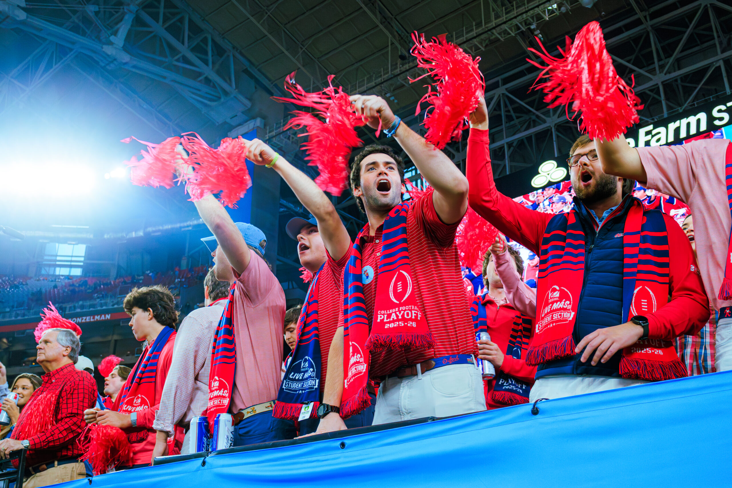 Ole Miss students cheer during the Fiesta Bowl on Jan. 8 in State Farm Stadium. Photo by Reese Johnson