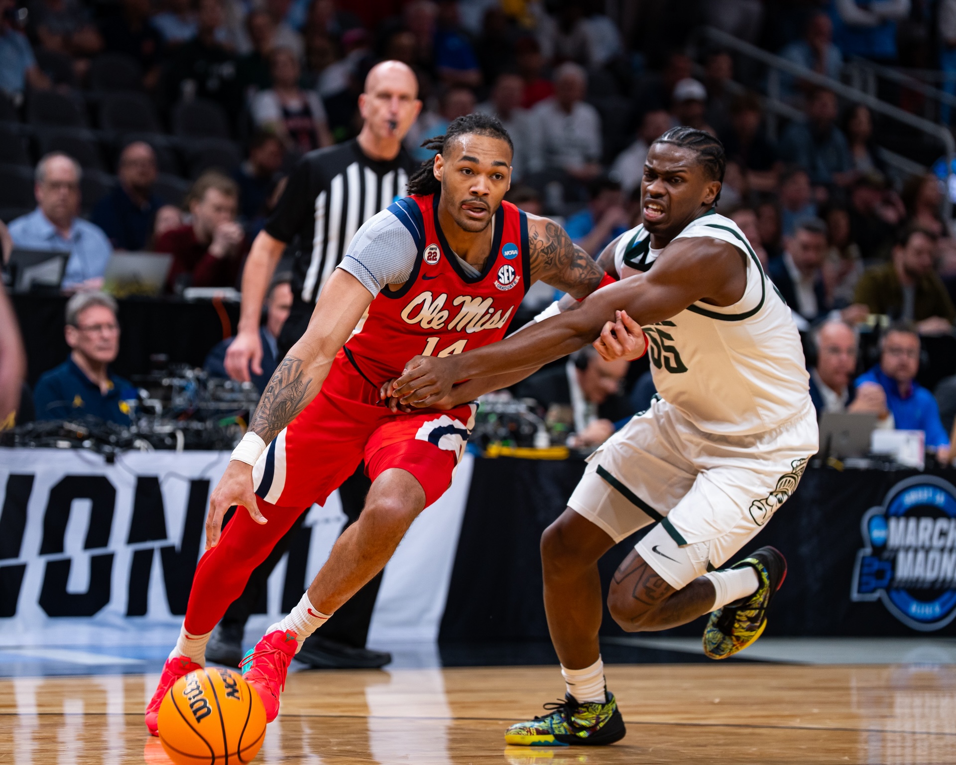 Guard Jalen Murray then scored five straight points out of the timeout. Michigan State guard Jase Richardson hit a big three to keep the Spartans in the game, but every point for Michigan State was painstaking. Murrell logged another steal; Ole Miss continued their stifling defense.