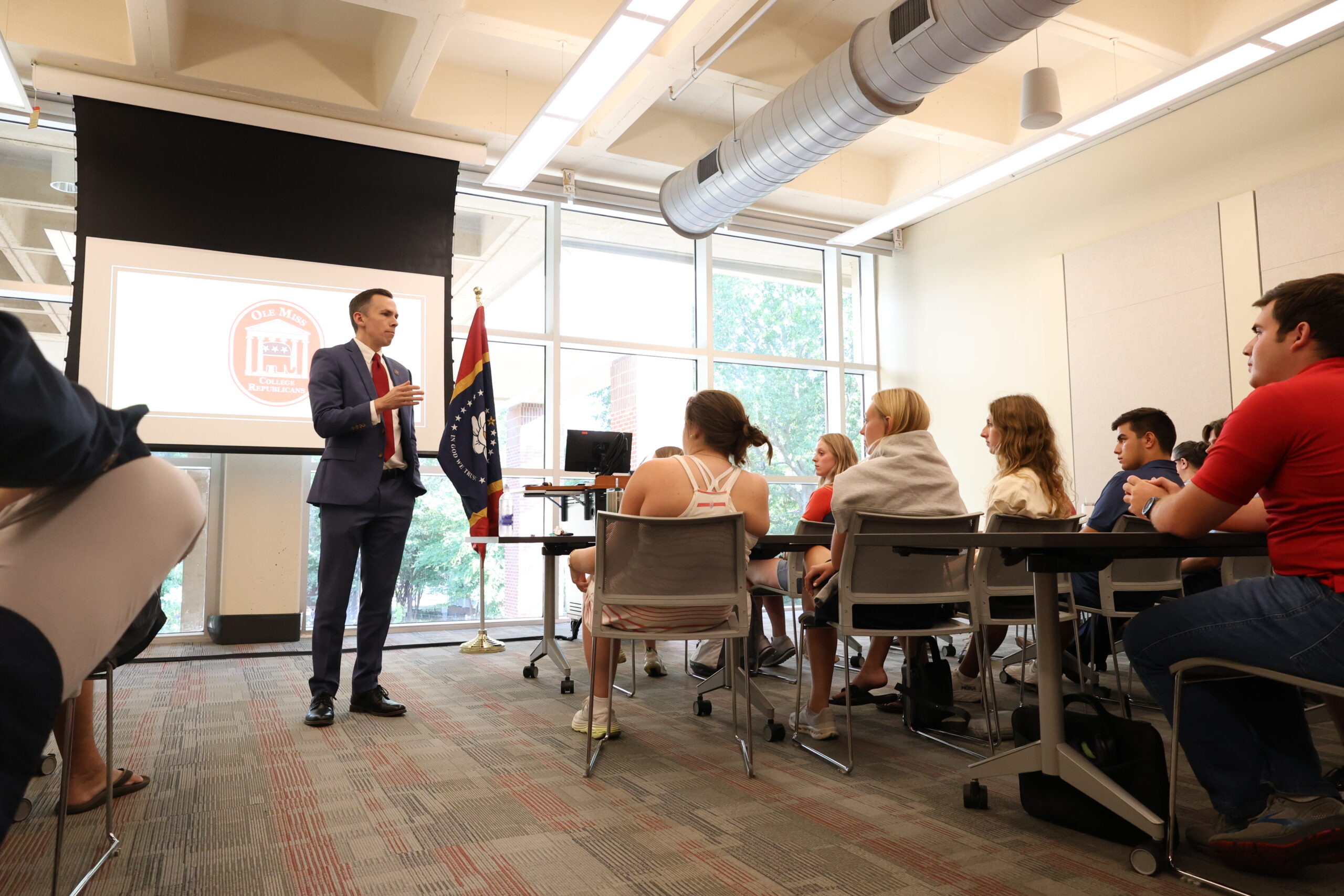 Mississippi State Auditor Shad White spoke at the Ole Miss College Republicans’ first meeting of the school year on Tuesday, Aug. 27.