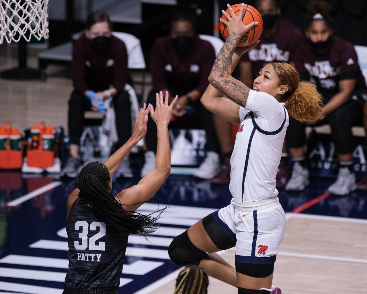 Lashonda Monk had a great night as well, leading the Rebels with 19 points and pulling down seven rebounds. Madison Scott gained her fourth double-double of the year with 13 points and 14 rebounds. Austin came out with 12 points, her 18th game in double-figures this season. Red-shirt senior Mimi Reid also contributed nine points to the win and an SEC-best six assists.