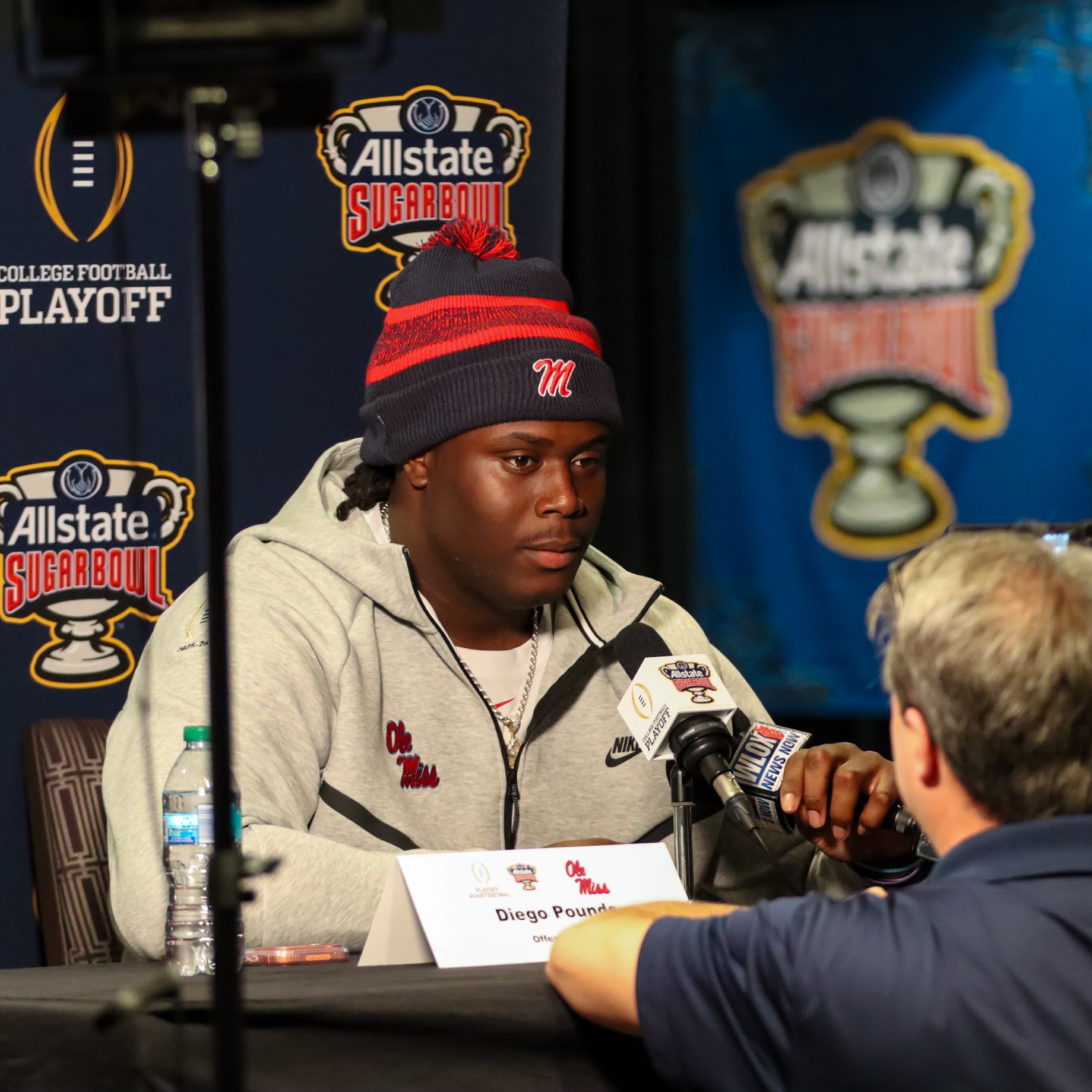 Diego Pound speaks to a reporter at Sugar Bowl Media Day at the Sheraton Hotel on Dec. 30. Photo by Will Wright