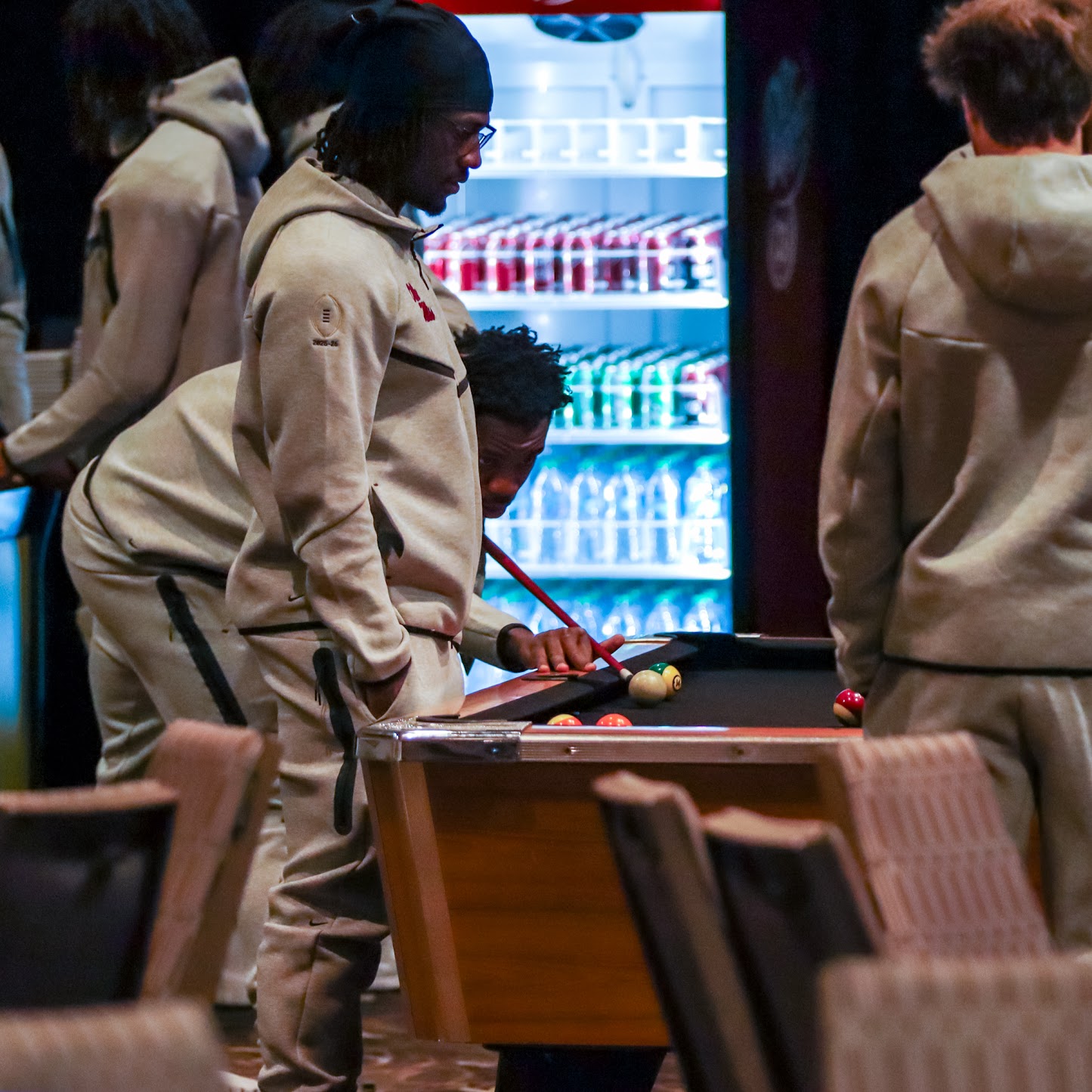Ole Miss Football players play pool at Sugar Bowl Media Day at the Sheraton Hotel on Dec. 30. Photo by Will Wright