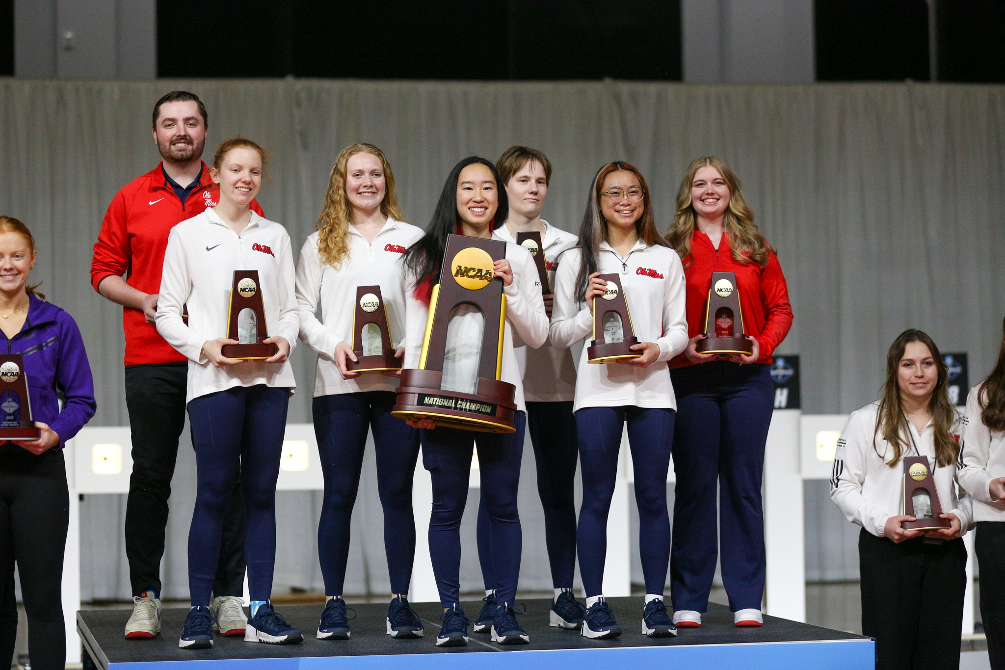 The Ole Miss Rifle team brought home the NCAA smallbore title from the NCAA Rifle Championships in Columbus, Ohio, on Friday, March 13 and Saturday, March 14. The team, composed entirely of women despite air rifle being a co-ed sport, finished third overall and tied for the best finish in program history. Audrey Gogniat won the individual air rifle championship.
