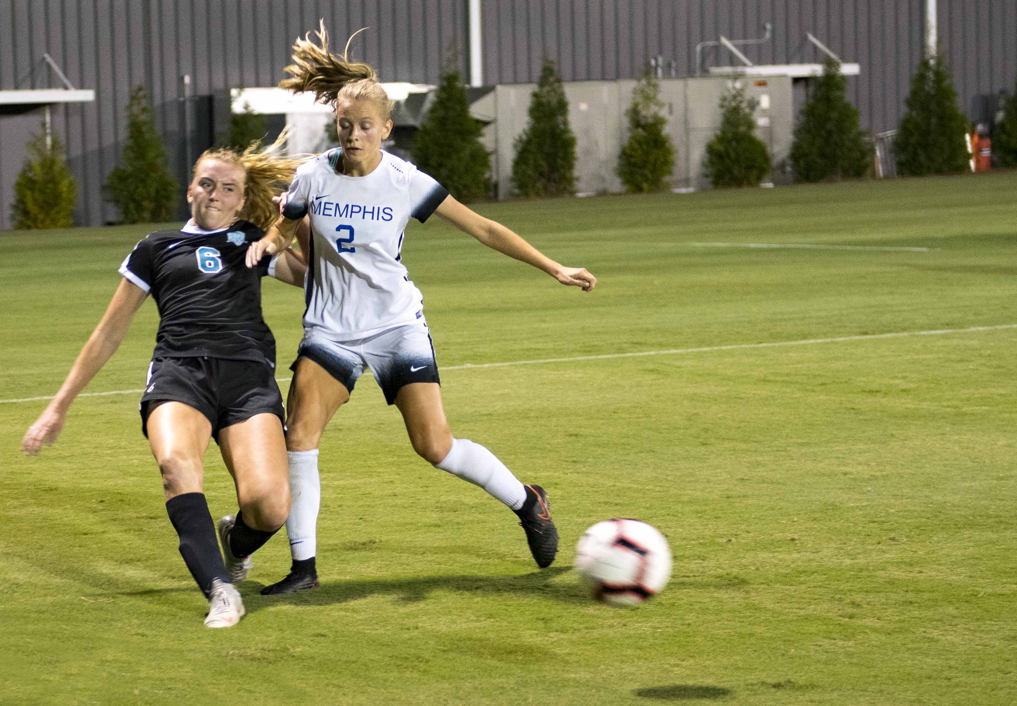 Grace Johnson kicks a corner kick on Sunday’s game versus Memphis. Photo by Christian Johnson