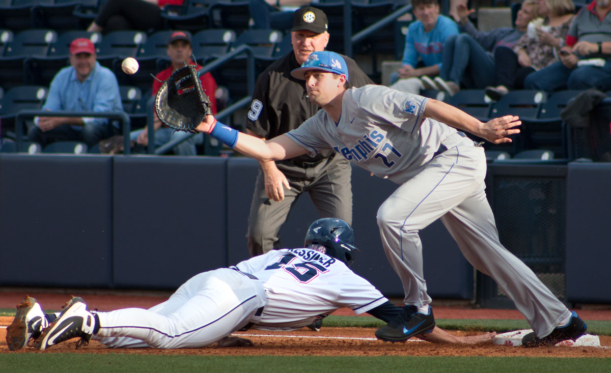 Heading into the eighth inning, Ole Miss had an 8-3 lead over Memphis, but three late Tiger runs forced Rebel pitcher Will Stokes and solidified closer Dallas Woolfolk to scramble to close the game. Memphis had the tying runs in scoring position in the top of the ninth, but Woolfolk sealed the deal with a strikeout.