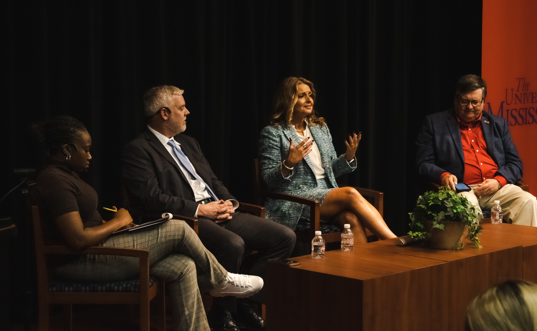 Violet Jira, a junior philosophy and journalism double major and managing editor for The Daily Mississippian, moderated the panel in the Overby Center auditorium.