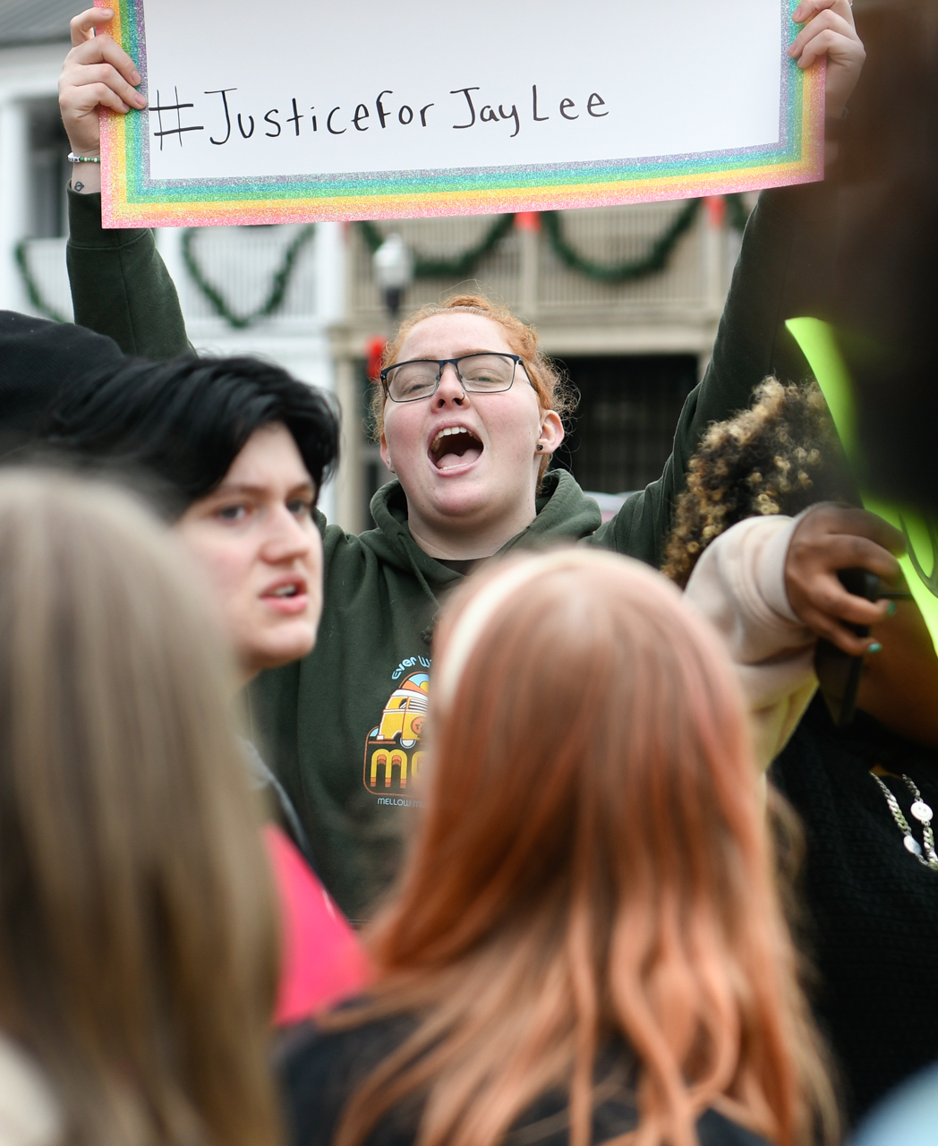 When members of the Lafayette Sheriff’s department exited the courthouse or Oxford Police Department vehicles drove around the circle, the protesters directed calls of “Do your job!” and “Go find Jay!” towards them.