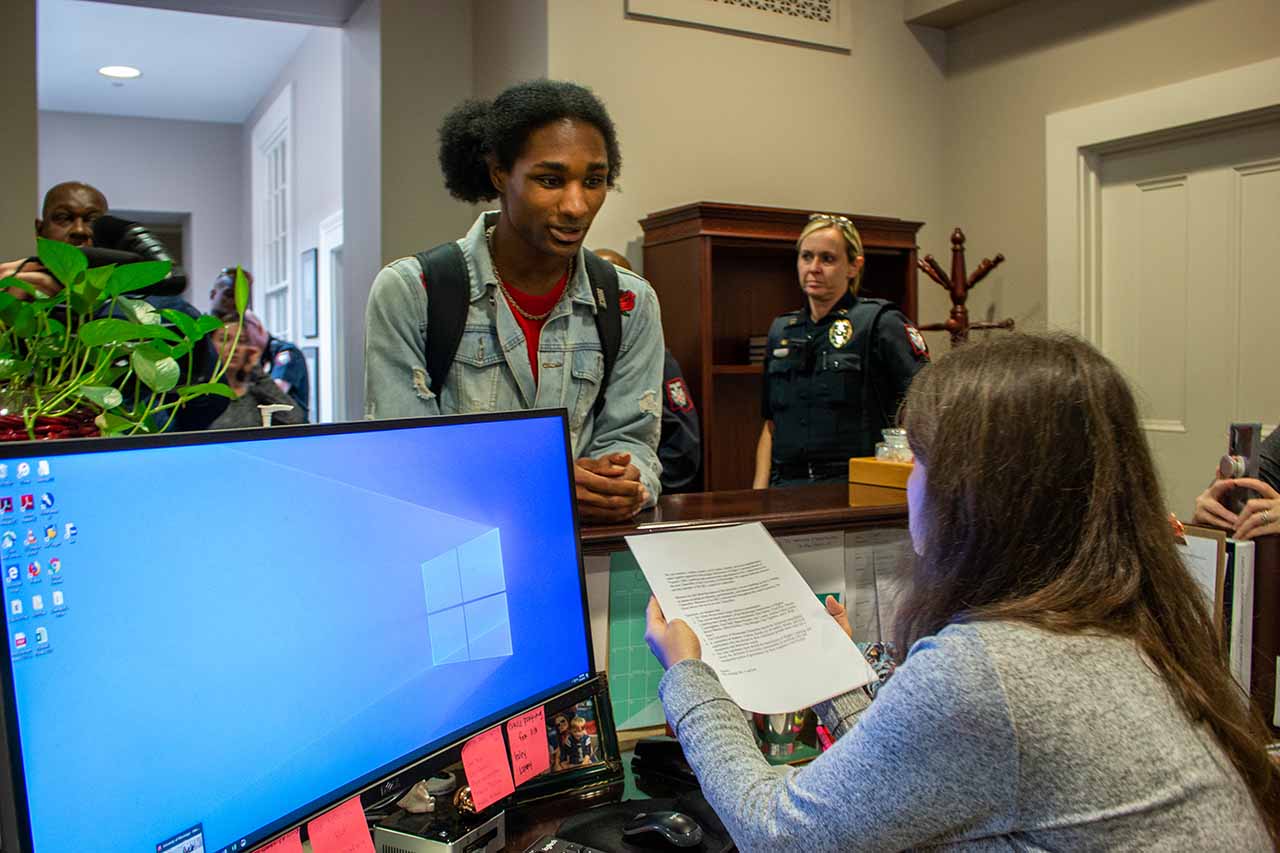 UPD Chief Ray Hawkins called off the announcement, which was scheduled to take place at the Inn at Ole Miss, after he said the protesters in the room were not being civil. When Hawkins asked one protester, Cam Calisch, to leave, and she didn’t comply, he carried her from the room.
