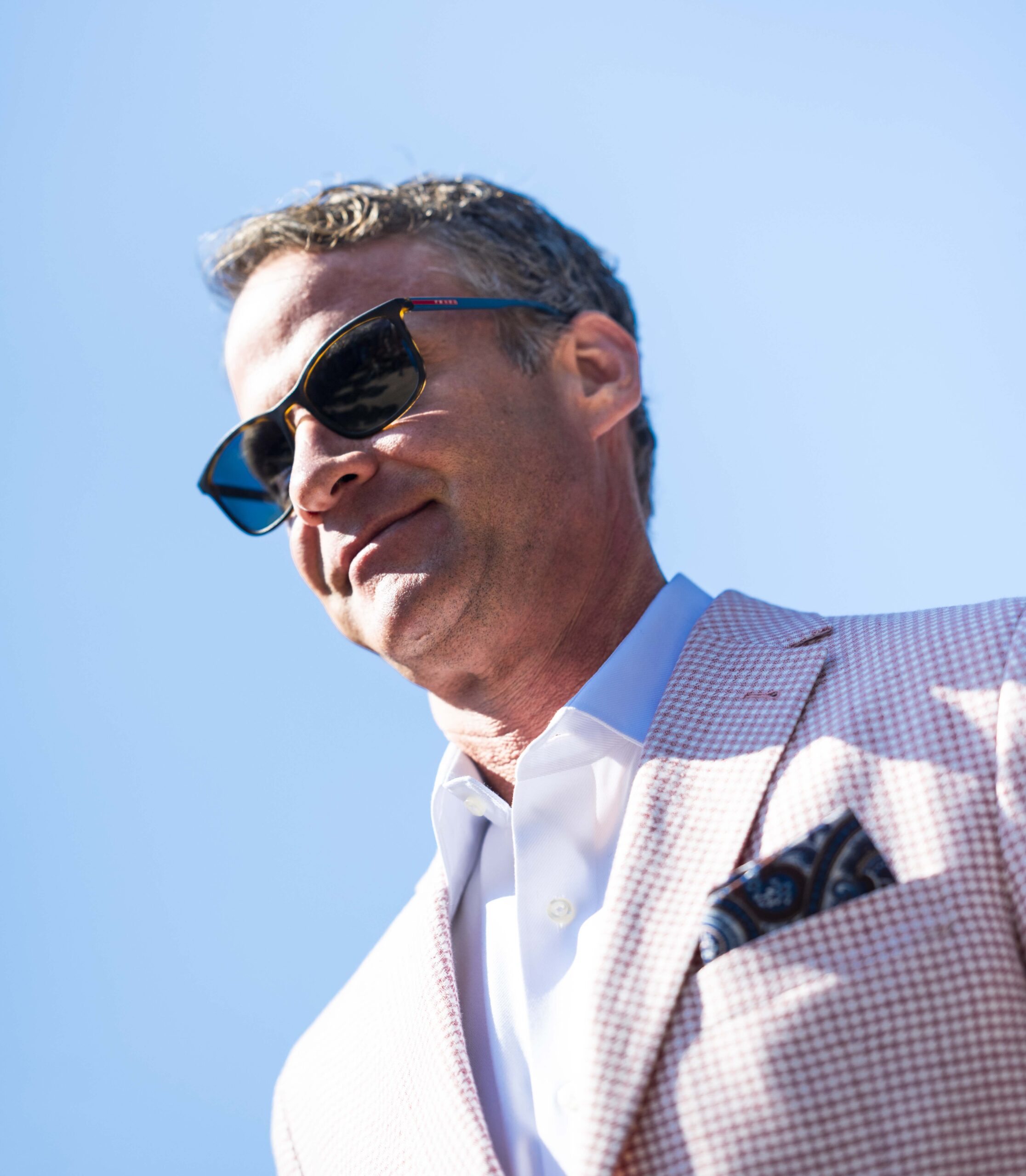 Lane Kiffin walks in The Grove before a game against Arkansas on Sept. 13. Photo by Olivia Cangelosi