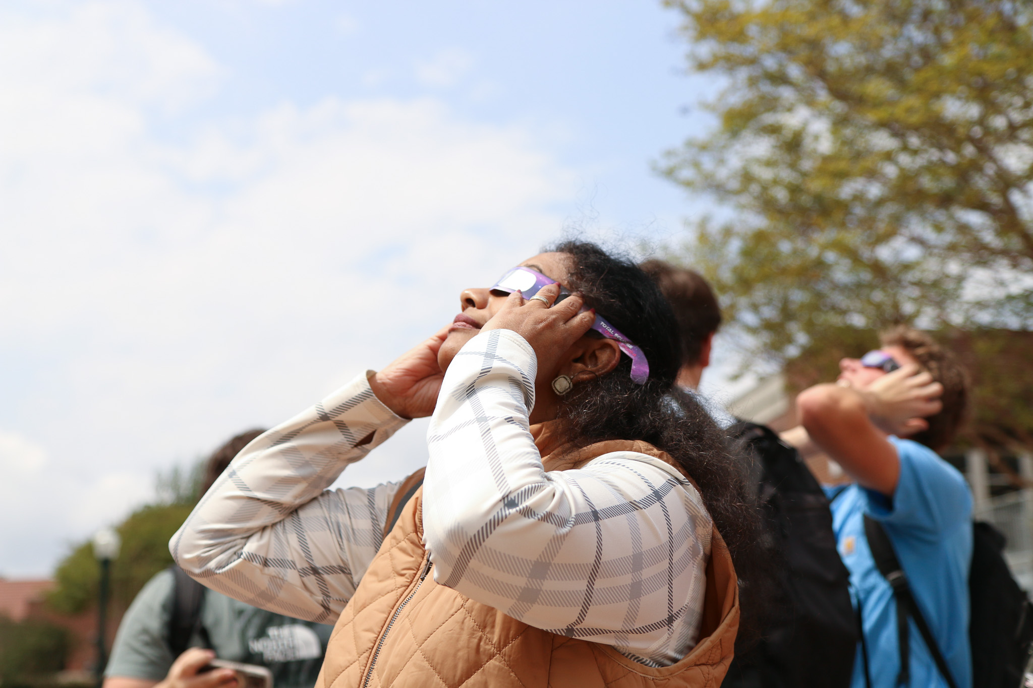 University of Mississippi students donned glasses and gazed into the sky with the hopes of capturing a glimpse of the solar eclipse on Monday, April 8.