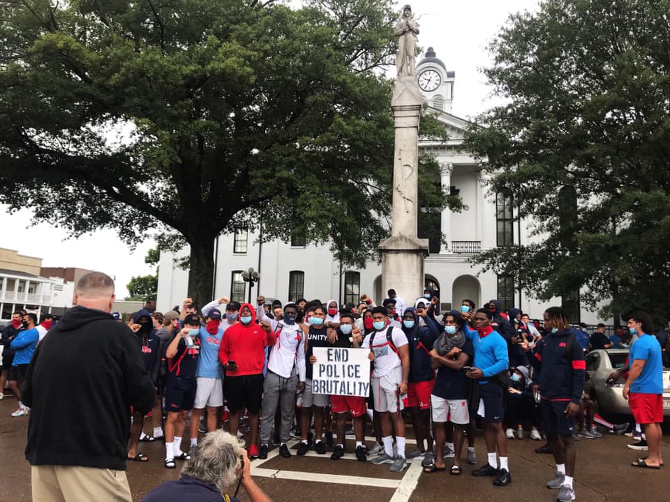 “We’re here because racism is here,” Anderson said when they reached the field. “We’re here because police brutality is here — because systematic oppression is here. All across America, including Mississippi (and) including right here in Oxford. So, my challenge to you is to fight.”