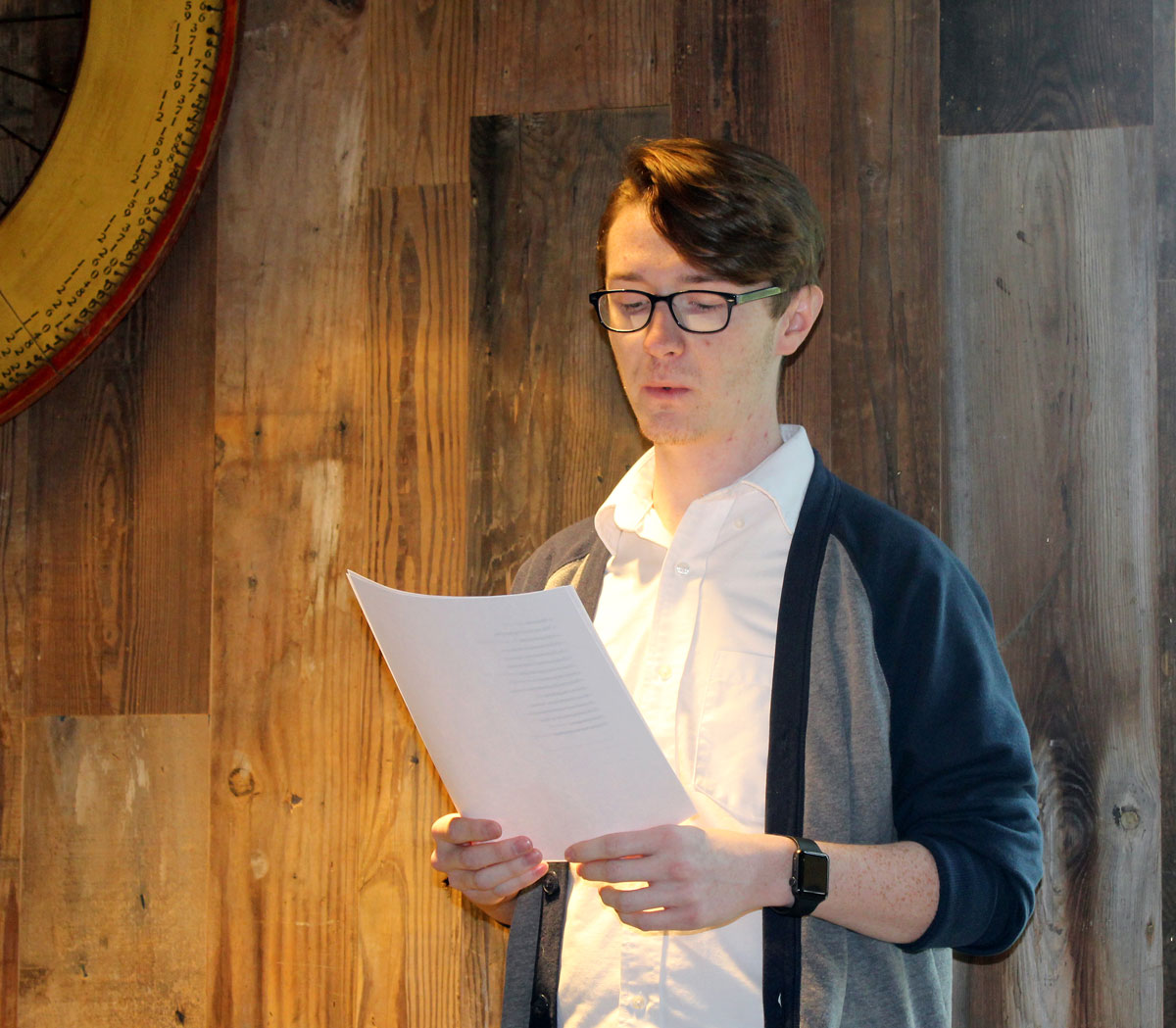 Christopher Roberts recites at the Lowercase poetry reading on Saturday. Photo by Sarah Liese