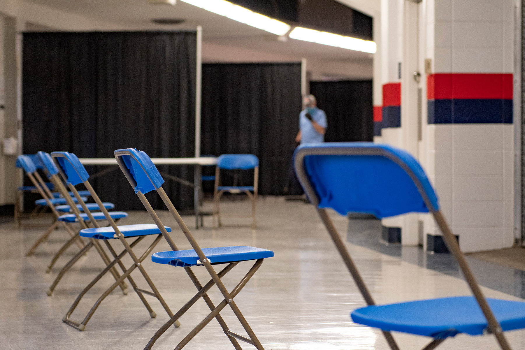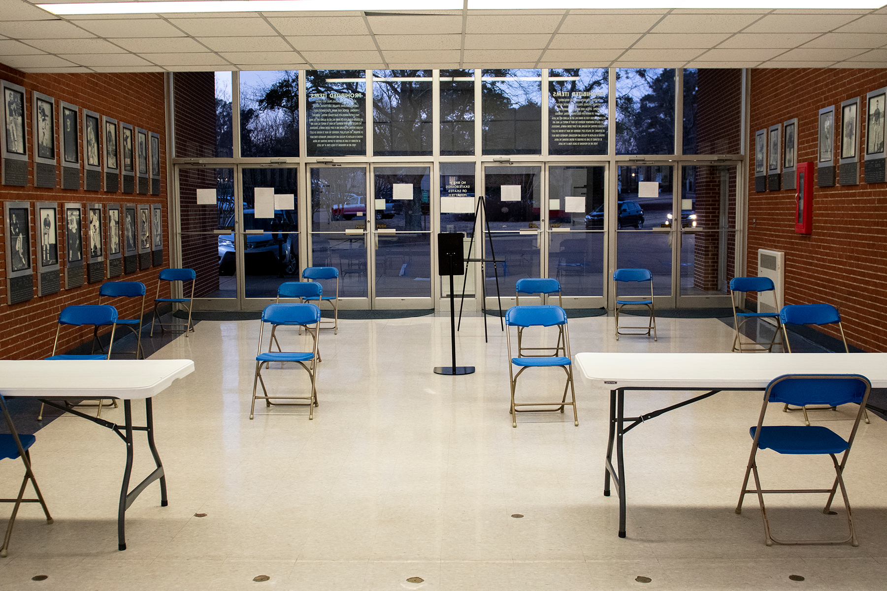 Socially-distanced tables and chairs fill the Tad Smith Coliseum, organizing the circular building into stations through which patients will rotate counter-clockwise. General medical supplies are stocked, and security guards are on call. According to students who have begun training, approximately 180 UM pharmacy students will be assisting licensed pharmacists in administering the vaccine.