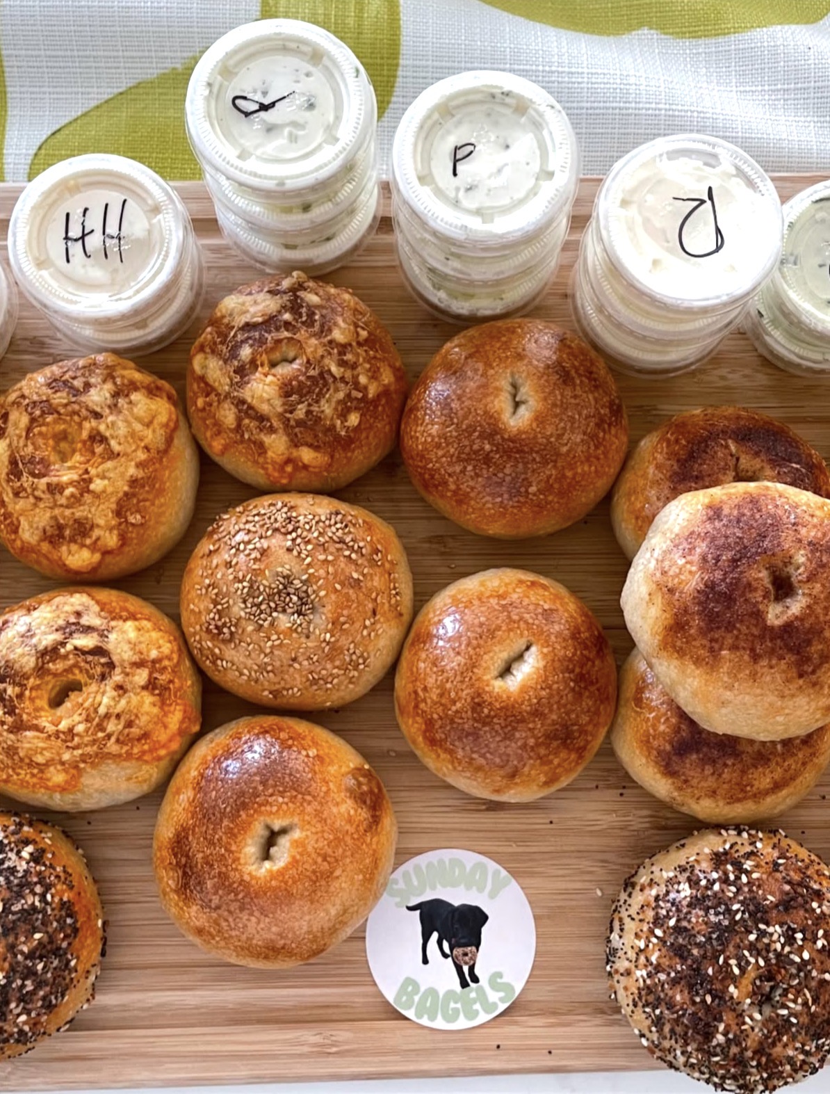 The bagels come in seven varieties: plain, sea salt, everything, cheese, jalepeño cheddar, sesame and cinnamon sugar. They also offer plain, pickle and hot honey cream cheese.