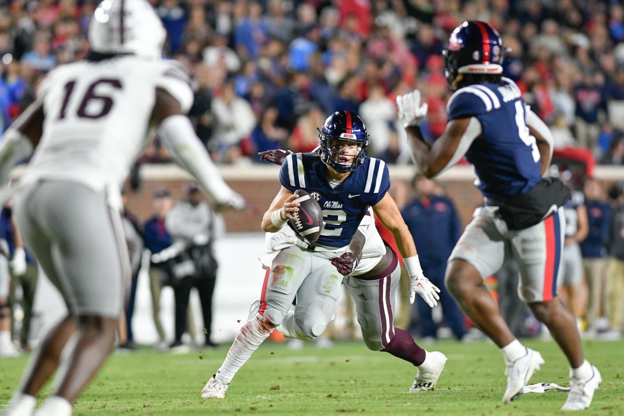 The first-year starter went 30 of 38 for 250 yards and a pair of touchdowns. (Keep in mind Jonathan Mingo and Malik Heath had a pair of huge drops early.)