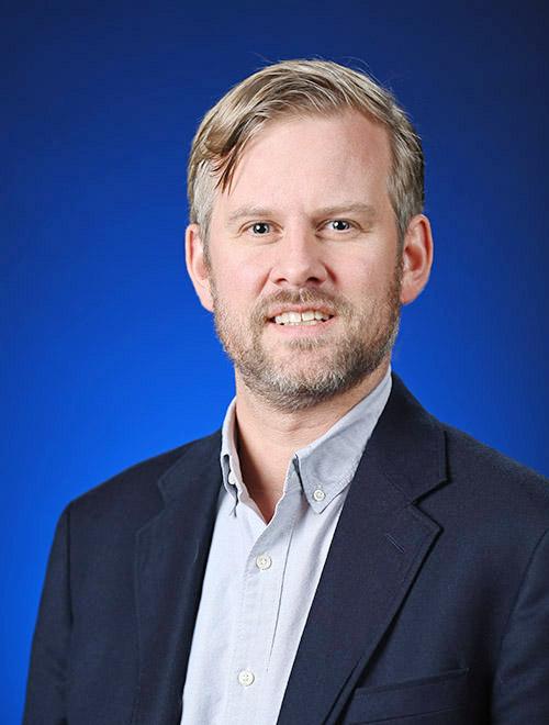 Charlot teaches JOUR 103, a large intro-level lecture class, and JOUR 576, a smaller graduate-level class.