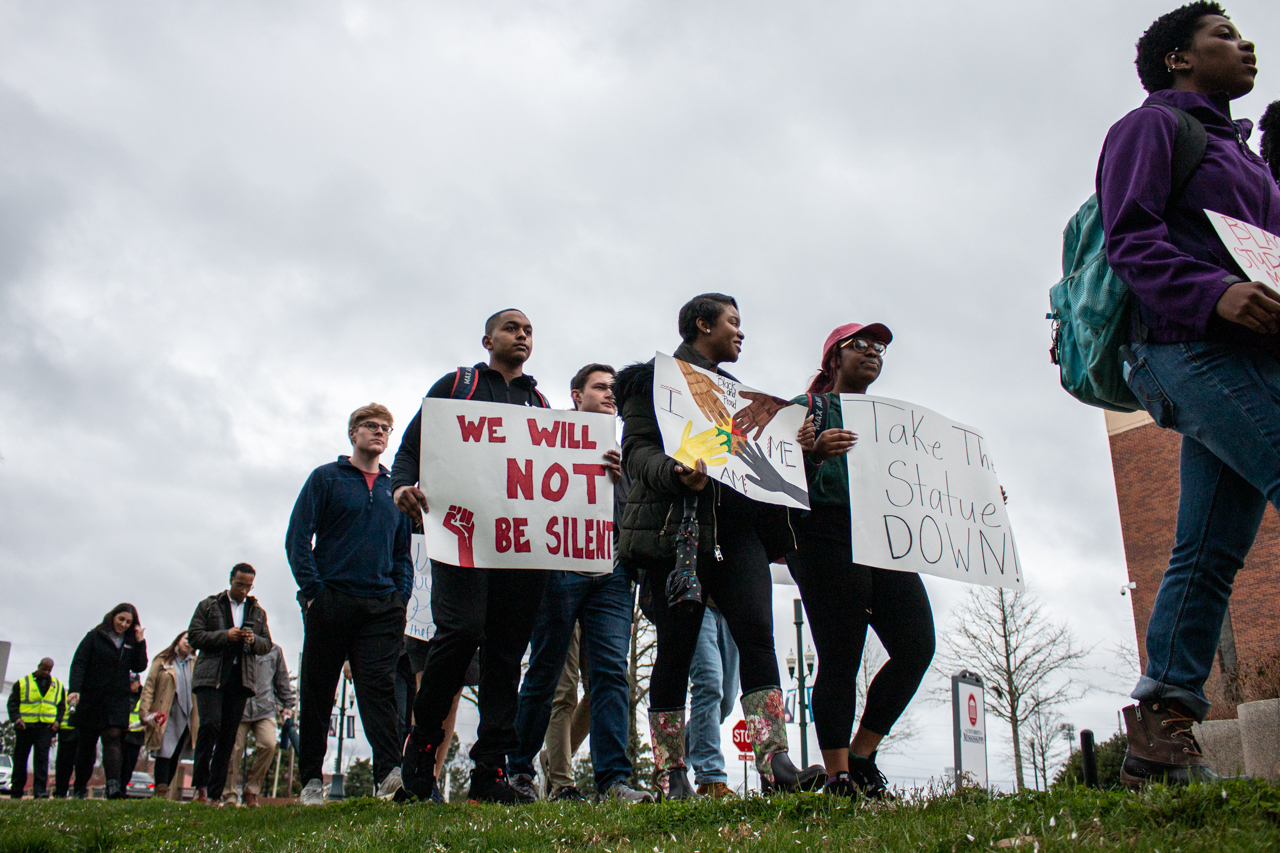 The groups registered the march with the university, and when they did so, they requested that the university place a podium behind the Confederate monument in the Circle for student leaders to speak. However, when the march reached the Circle, the podium had been placed in front of the Lyceum instead.